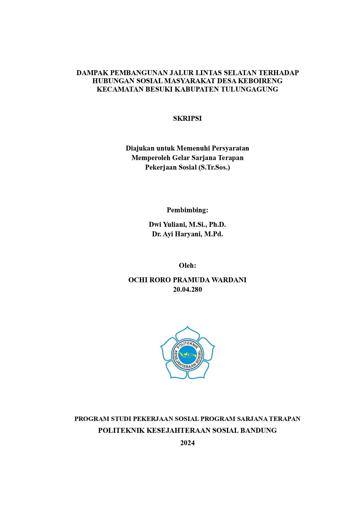 Dampak Pembangunan Jalur Lintas Selatan terhadap Hubungan Sosial Masyarakat Desa Keboireng Kecamatan Besuki Kabupaten Tulungagung.