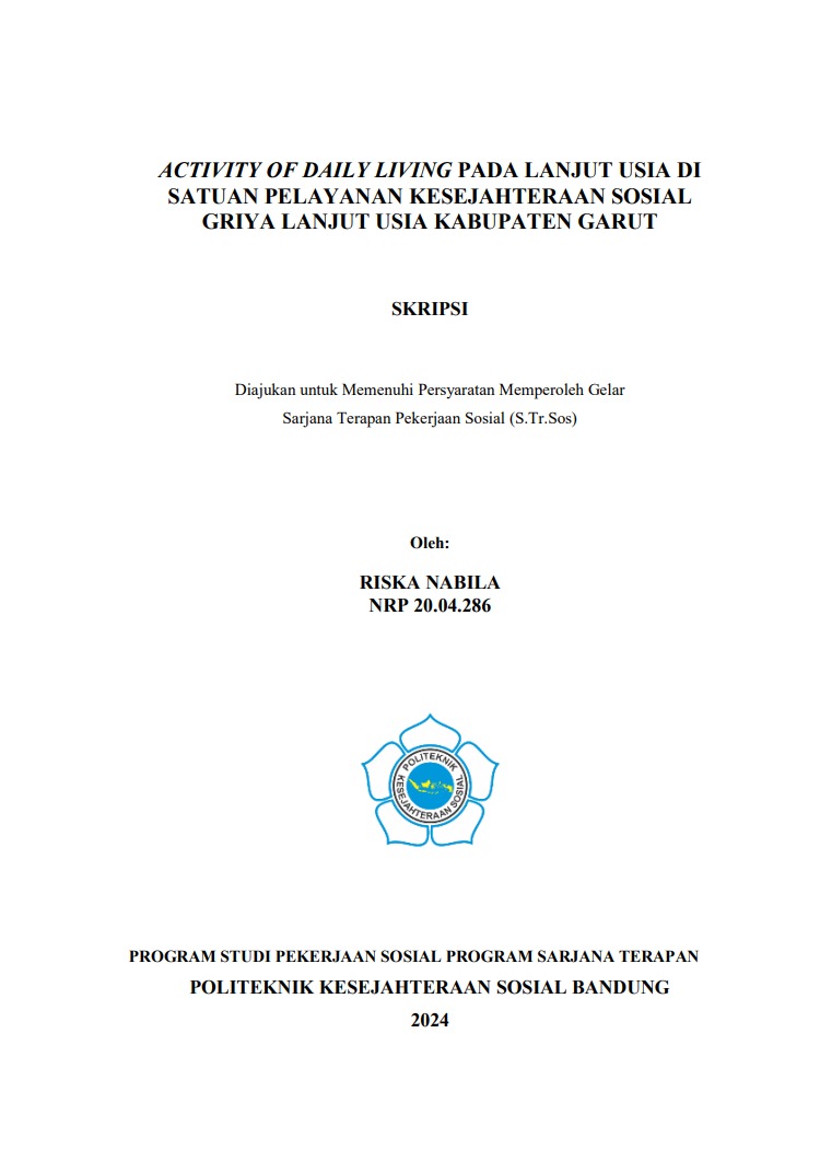 RISKA NABILA, NRP 20.04.286 Activity Of Daily Living Pada Lanjut Usia Di Satuan Pelayanan Kesejahteraan Sosial Griya Lanjut Usia Kabupaten Garut.