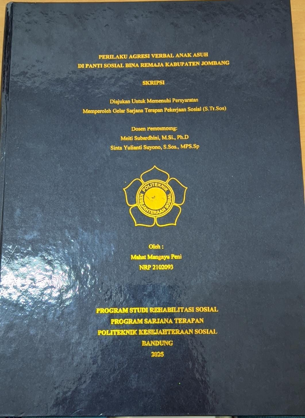 MAHAT MANGAYU PENI, NRP. 21.02.093. Perilaku Agresi Verbal Anak Asuh Di Panti Sosial Bina Remaja Kabupaten Jombang. Dibimbing Oleh Meiti Subardhini and Sinta Yulianti Suyono