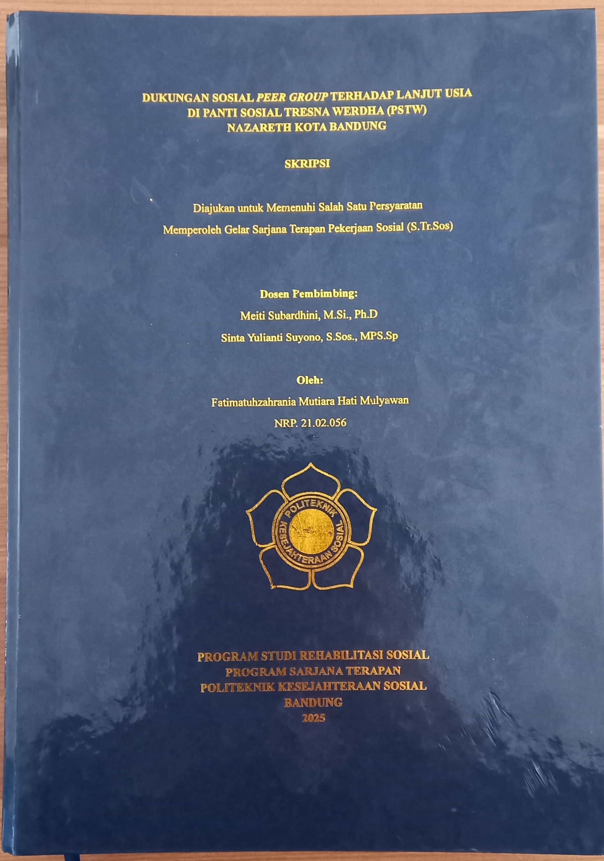 FATIMATUHZAHRANIA MUTIARA HATI MULYAWAN, 21.02.056. Dukungan Sosial Peer Group terhadap Lansia di Panti Sosial Tresna Werdha (PSTW) Nazareth Kota Bandung. Dibimbing oleh MEITI SUBARDHINI dan SINTA YULIANTI SUYONO.