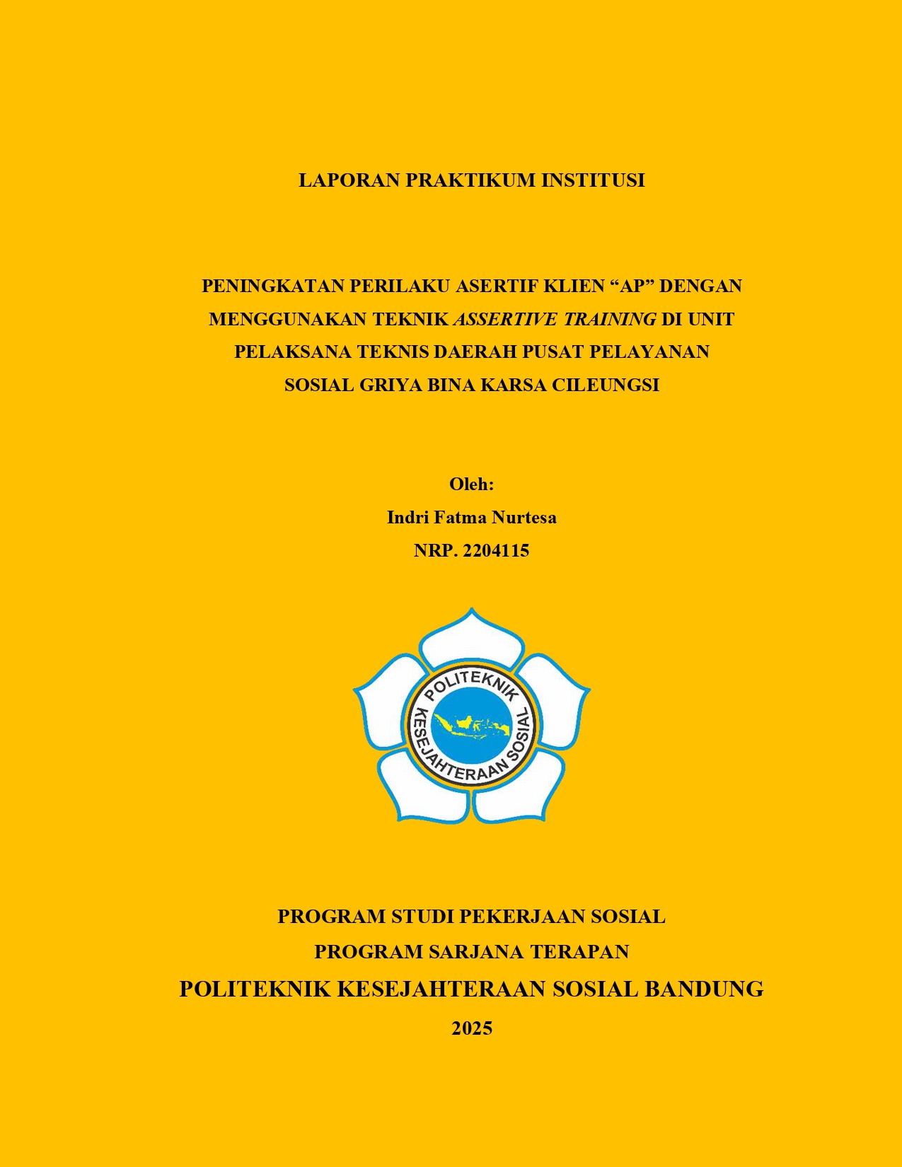 LAPORAN PRAKTIKUM INSTITUSI PENINGKATAN PERILAKU ASERTIF KLIEN “AP” DENGAN MENGGUNAKAN TEKNIK ASSERTIVE TRAINING DI UNIT PELAKSANA TEKNIS DAERAH PUSAT PELAYANAN SOSIAL GRIYA BINA KARSA CILEUNGSI
