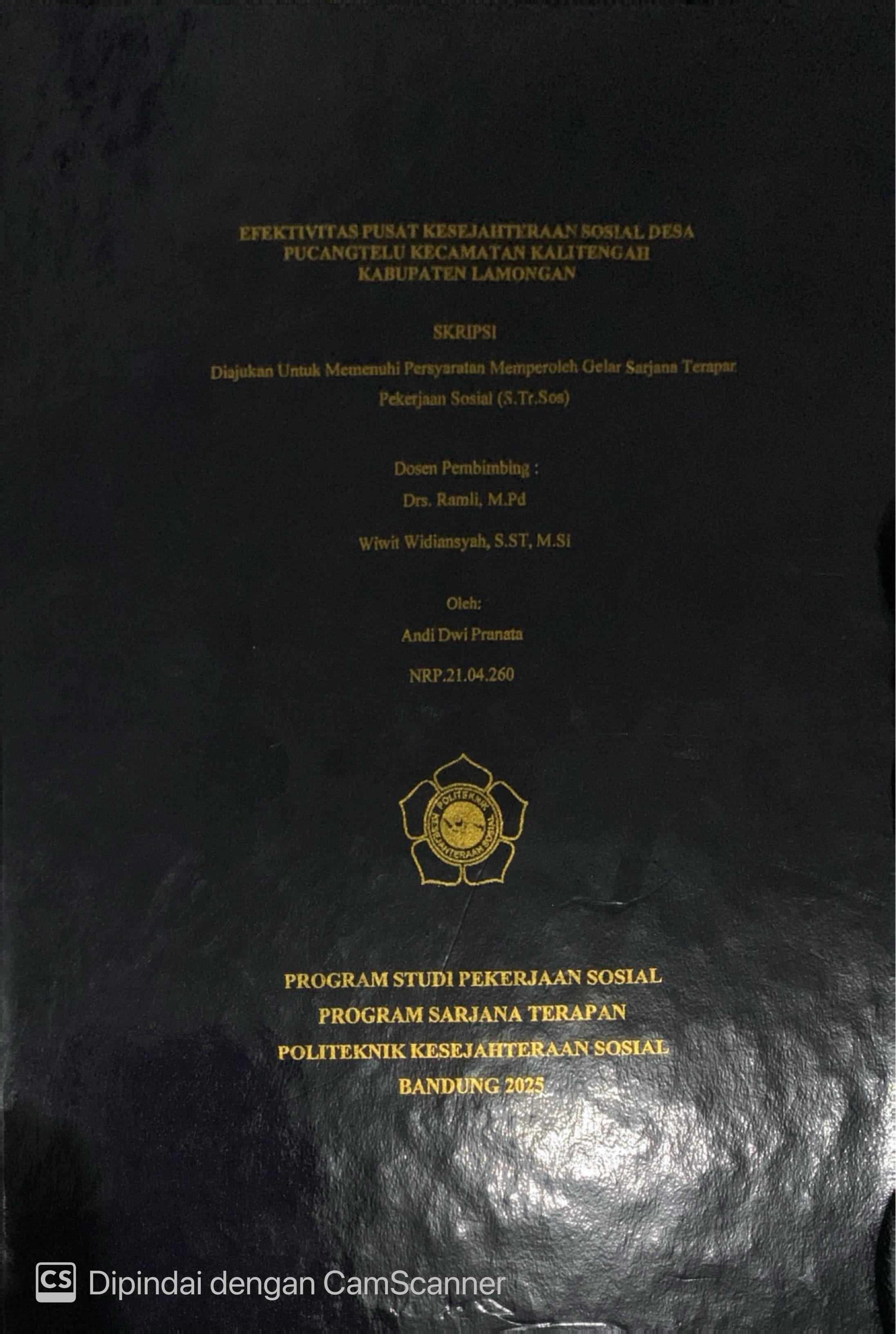 ANDI DWI PRANATA NRP. 21.04.260. Efektivitas Pusat Kesejahteraan Sosial Desa Pucangtelu Kecamatan Kalitengah Kabupaten Lamongan. Di Bimbing Oleh RAMLI dan WIWIT WIDIANSYAH.