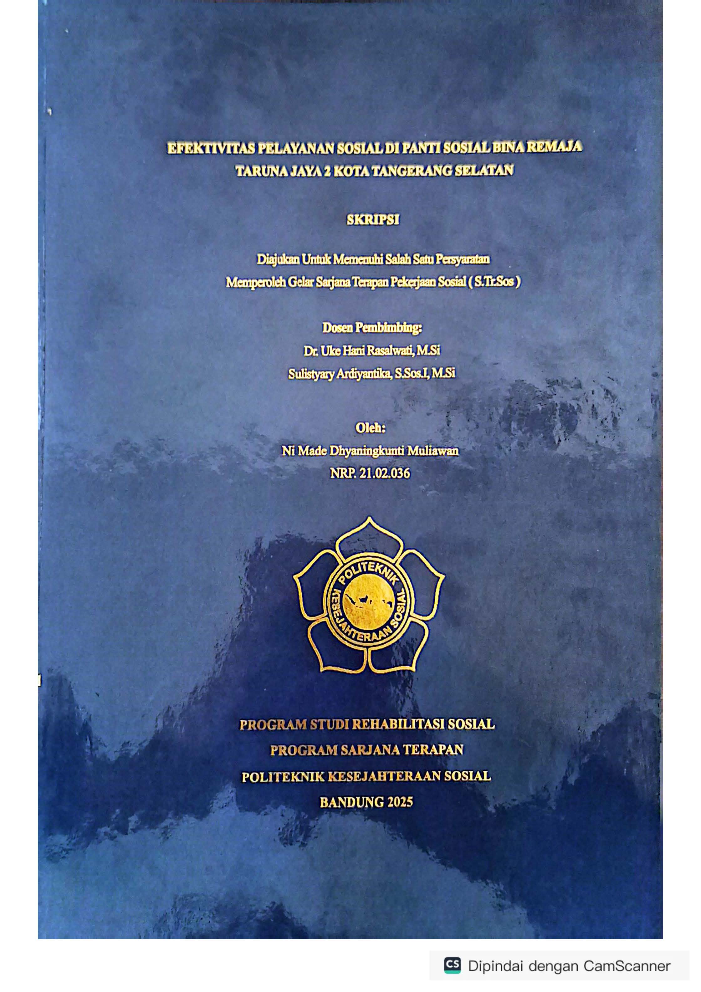 Kata Kunci : Efektivitas, Pelayanan Sosial, Panti Sosial, Warga Binaan Sosial