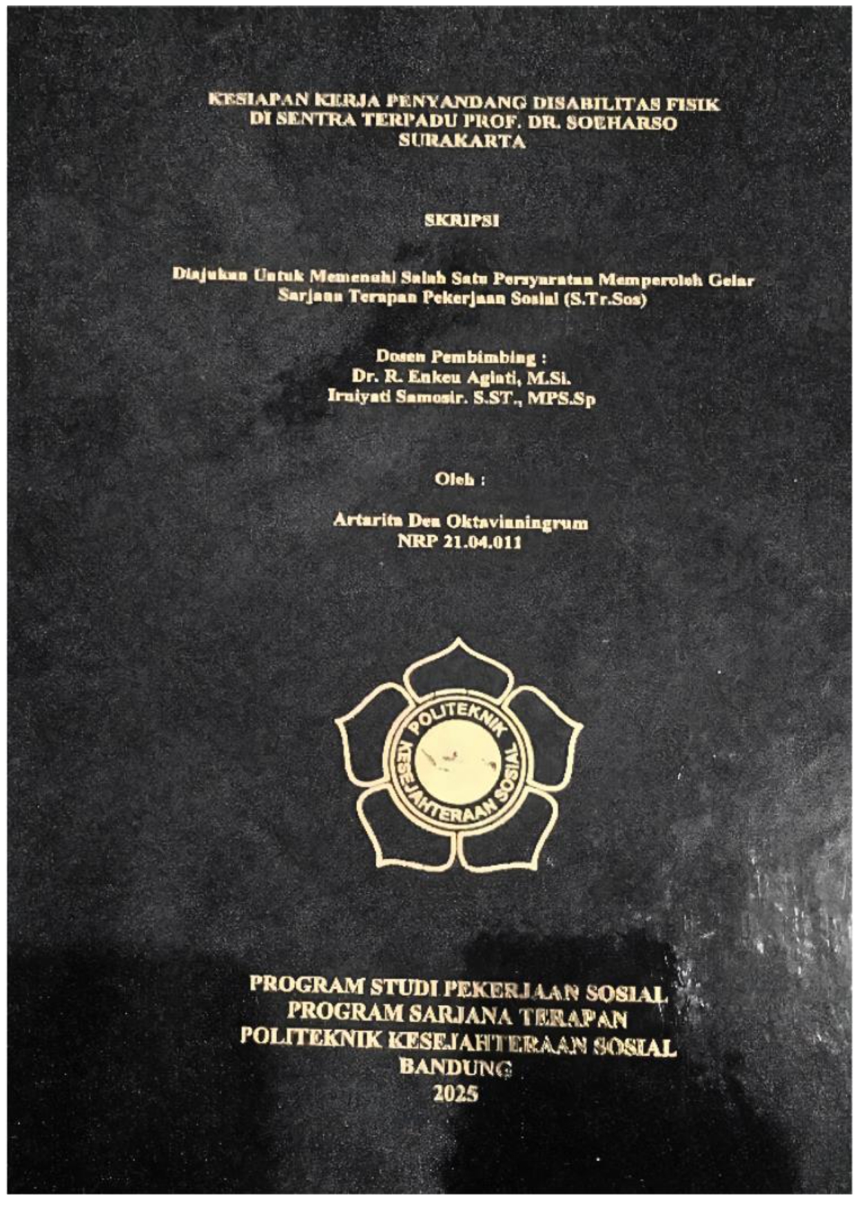 ARTARITA DEA OKTAVIANINGRUM, NRP 21.04.011. Kesiapan Kerja Penyandang Disabilitas Fisik di Sentra Terpadu Prof. Dr. Soeharso Surakarta. Dosen Pembimbing: RADEN ENKEU AGIATI dan IRNIYATI SAMOSIR.