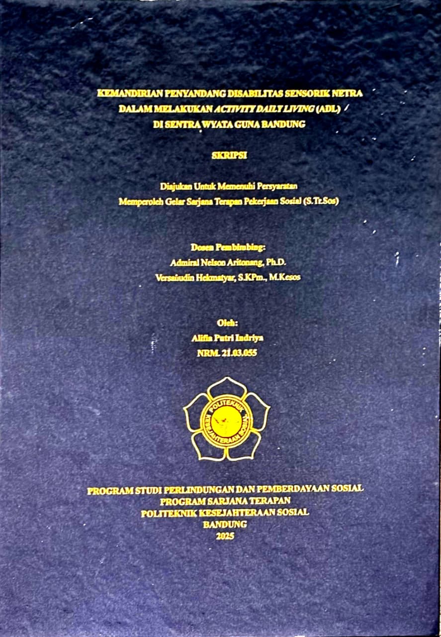 ALIFIA PUTRI INDRIYA: Kemandirian Penyandang Disabilitas Sensorik Netra Dalam Melakukan Activity Daily Living (ADL) di Sentra Wyata Guna Bandung. Dosen Pembimbing: ADMIRAL NELSON ARITONANG dan VERSANUDIN HEKMATYAR