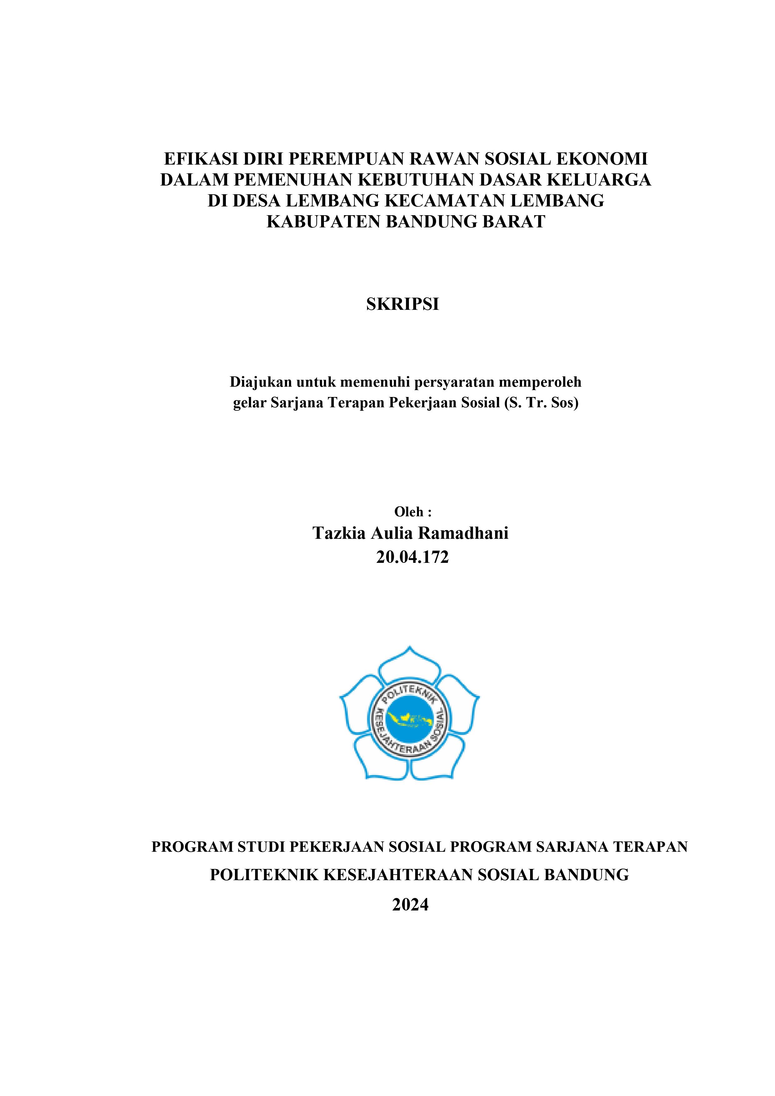TAZKIA AULIA RAMADHANI, NRP. 20.04.172. Efikasi Diri Perempuan Rawan Sosial Ekonomi dalam Pemenuhan Kebutuhan Dasar Keluarga di Desa Lembang Kecamatan Lembang Kabupaten Bandung Barat.