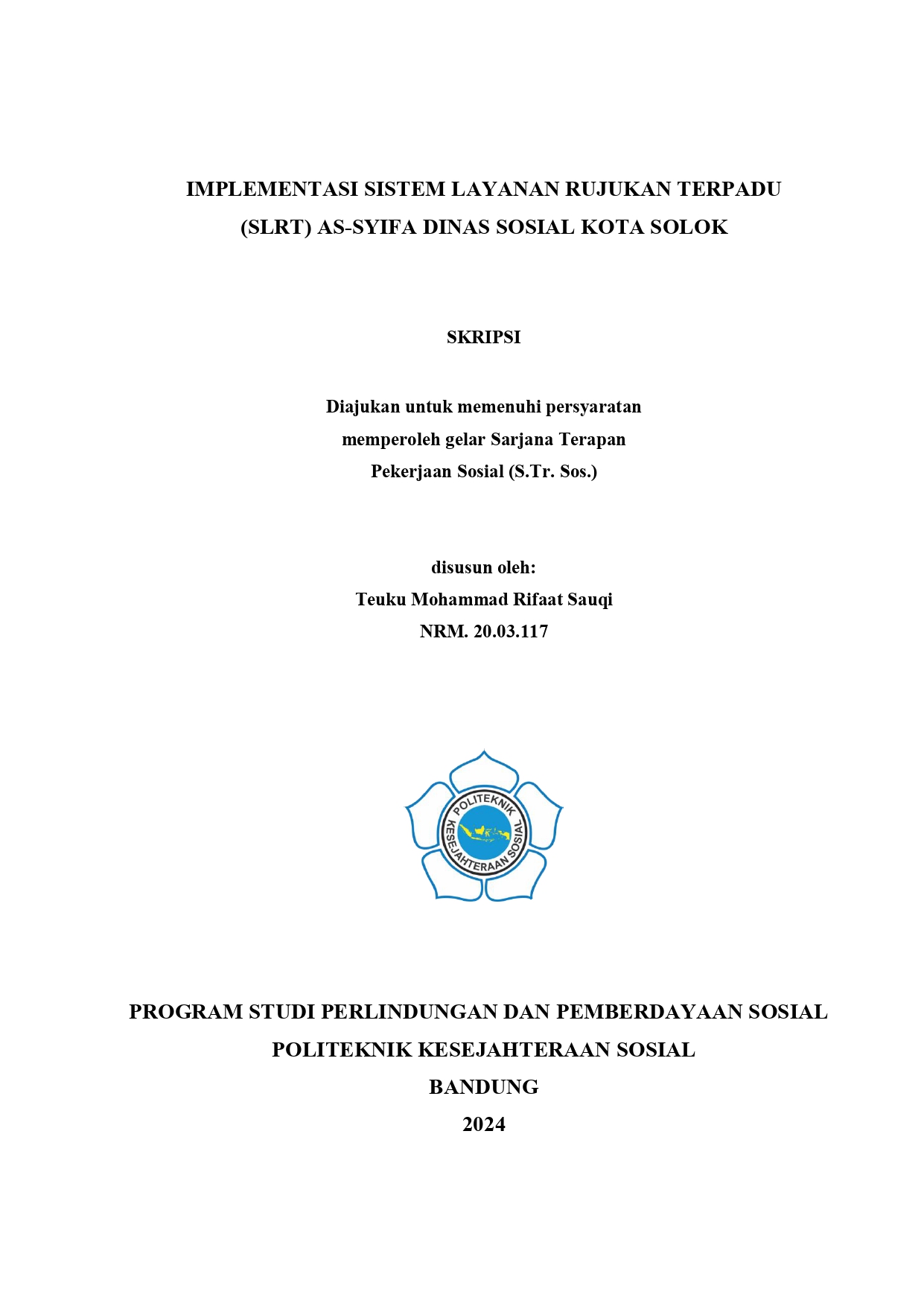 TEUKU MOHAMMAD RIFAAT SAUQI, NRM. 20.03.117. Implementasi Sistem Layanan Rujukan Terpadu (SLRT) As-Syifa Dinas Sosial Kota Solok.