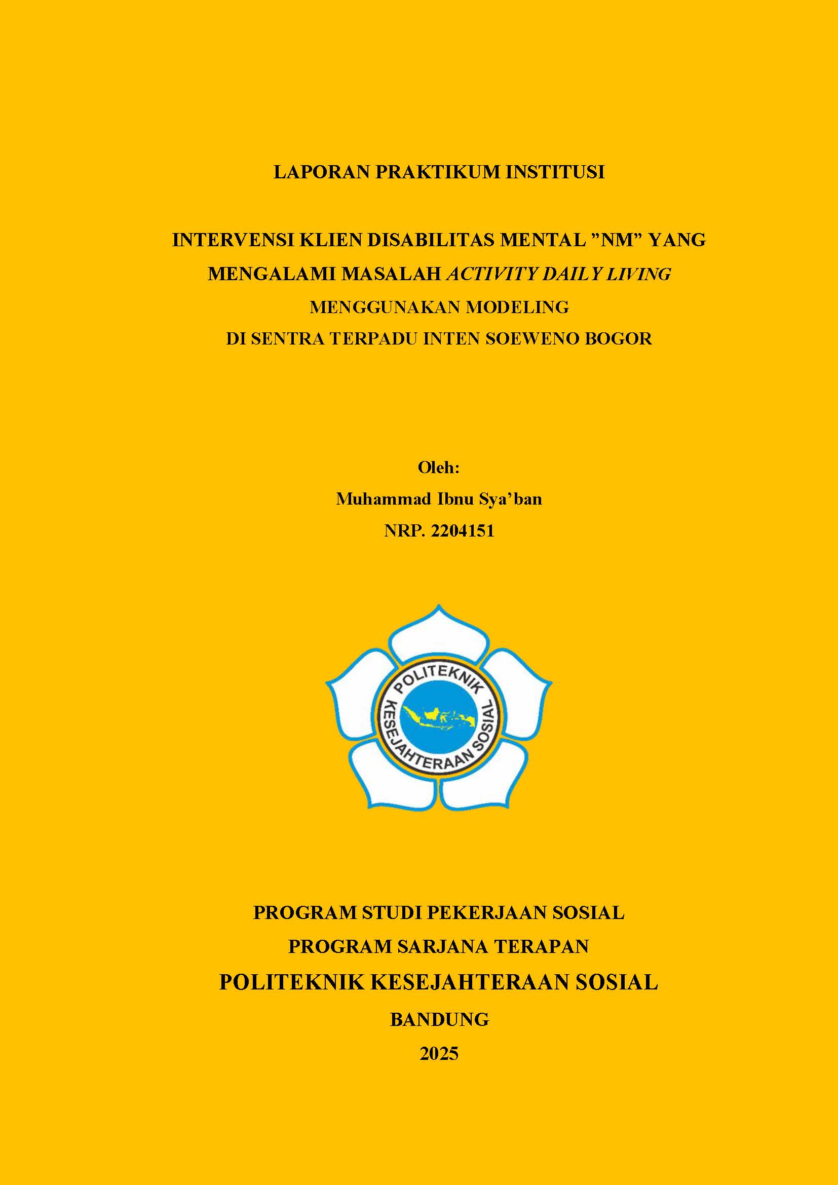 LAPORAN PRAKTIKUM INSTITUSI - INTERVENSI KLIEN DISABILITAS MENTAL ”NM” YANG MENGALAMI MASALAH ACTIVITY DAILY LIVING MENGGUNAKAN MODELING DI SENTRA TERPADU INTEN SOEWENO BOGOR