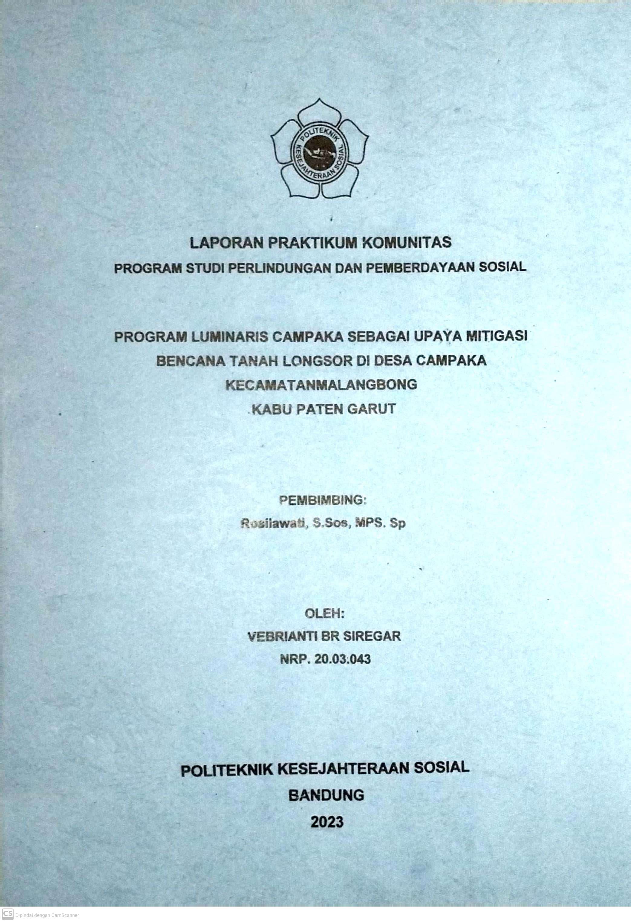LAPORAN PRAKTIKUM KOMUNITAS - Peningkatan Mitigasi bencana tanah longsor melalui program Luminaris Campaka di RW 04 Desa Campaka Kecamatan Malangbong