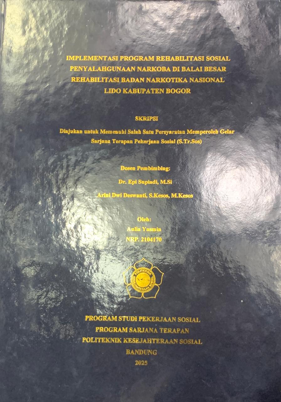 AULIA YASMIN, NRP. 21.04.170. Implementasi Program Rehabilitasi Sosial Penyalahgunaan Narkoba Di Balai Besar Rehabilitasi Badan Narkotika Nasional Lido Kabupaten Bogor. Dosen Pembimbing: EPI SUPIADI dan ARINI DWI DESWANTI