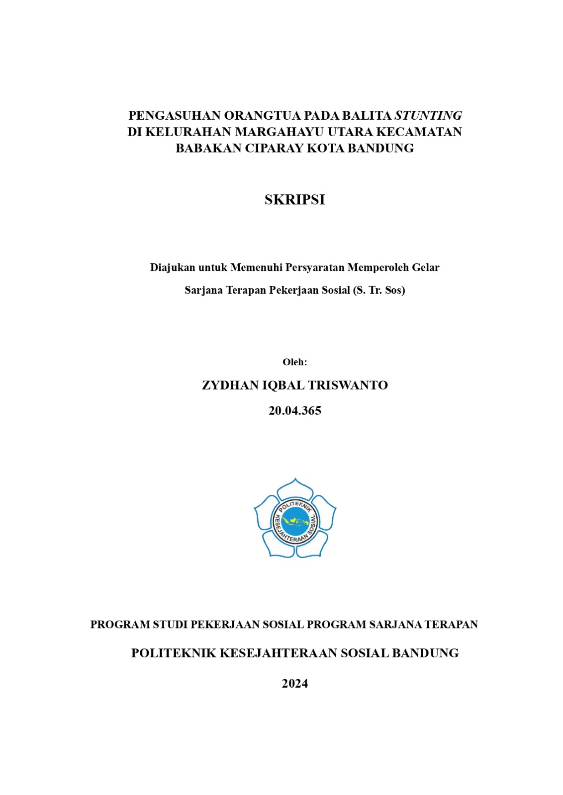 ZYDHAN IQBAL TRISWANTO. NRP. 20.04.365. Pengasuhan Orangtua Pada Balita Stunting di Kelurahan Margahayu Utara Kecamatan Babakan Ciparay Kota Bandung. Skripsi, Sarjana Terapan Pekerjaan Sosial Poltekesos Bandung,