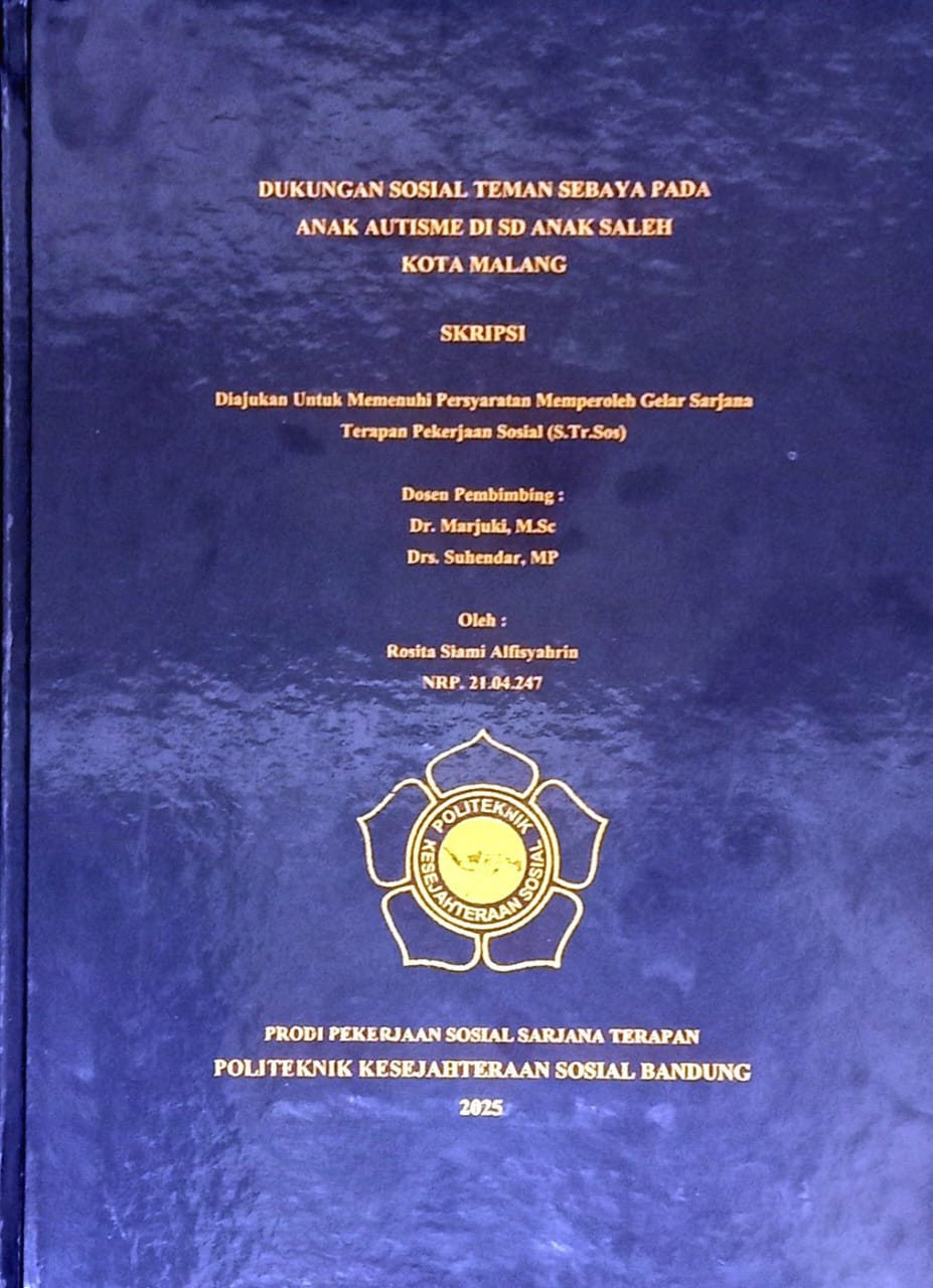 Rosita Siami Alfisyahrin, NRP. 21.04.247. Dukungan Sosial Teman Sebaya pada Anak Autisme di SD Anak Saleh Kota Malang. Dibimbing oleh MARJUKI dan SUHENDAR.