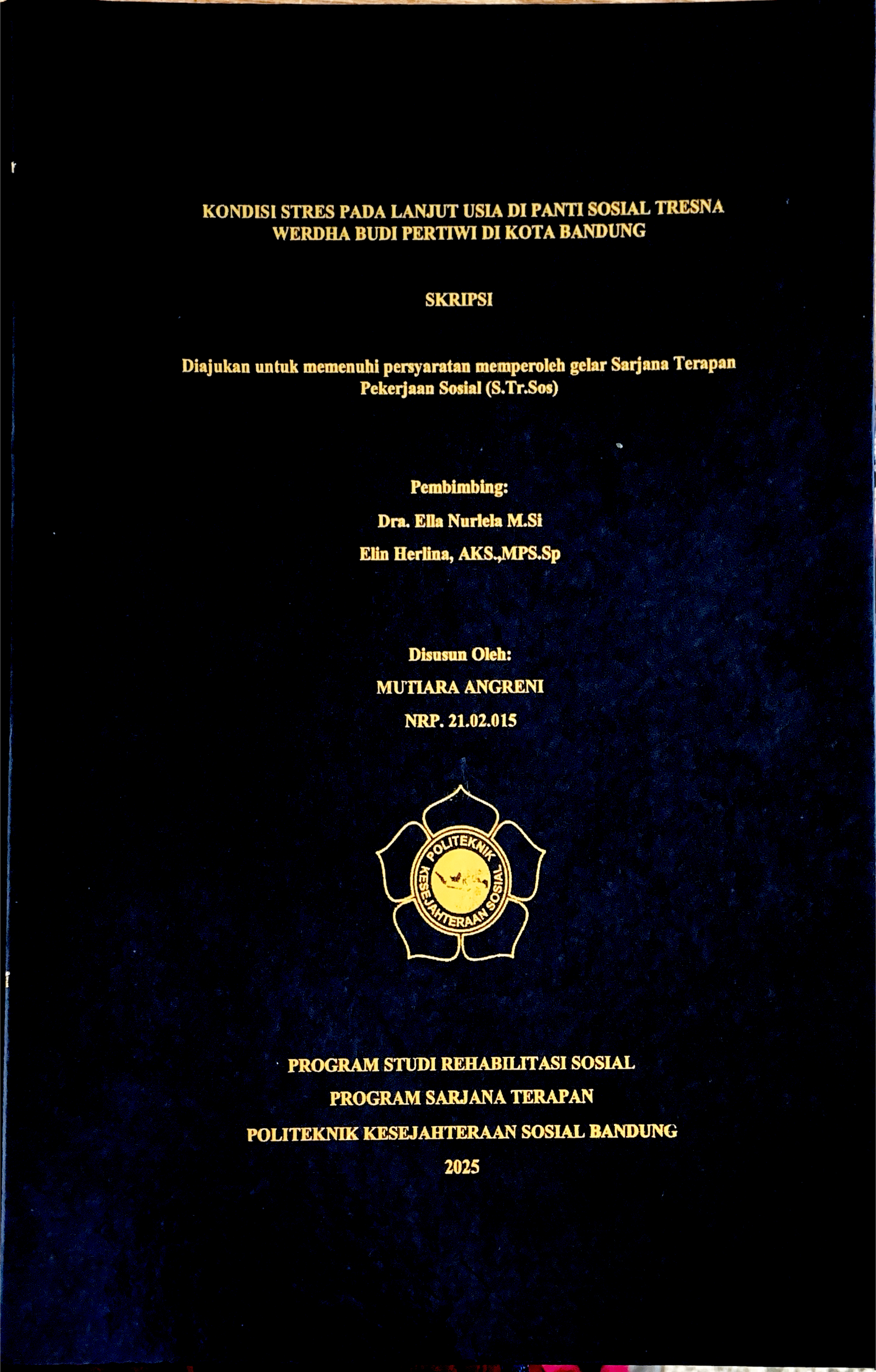 MUTIARA ANGRENI, NRP. 21.02.015. Kondisi Stres Pada Lanjut Usia Di Panti Sosial Tresna Werdha Budi Pertiwi Di Kota Bandung. Dibimbing oleh: ELLA NURLELA dan ELIN HERLINA.