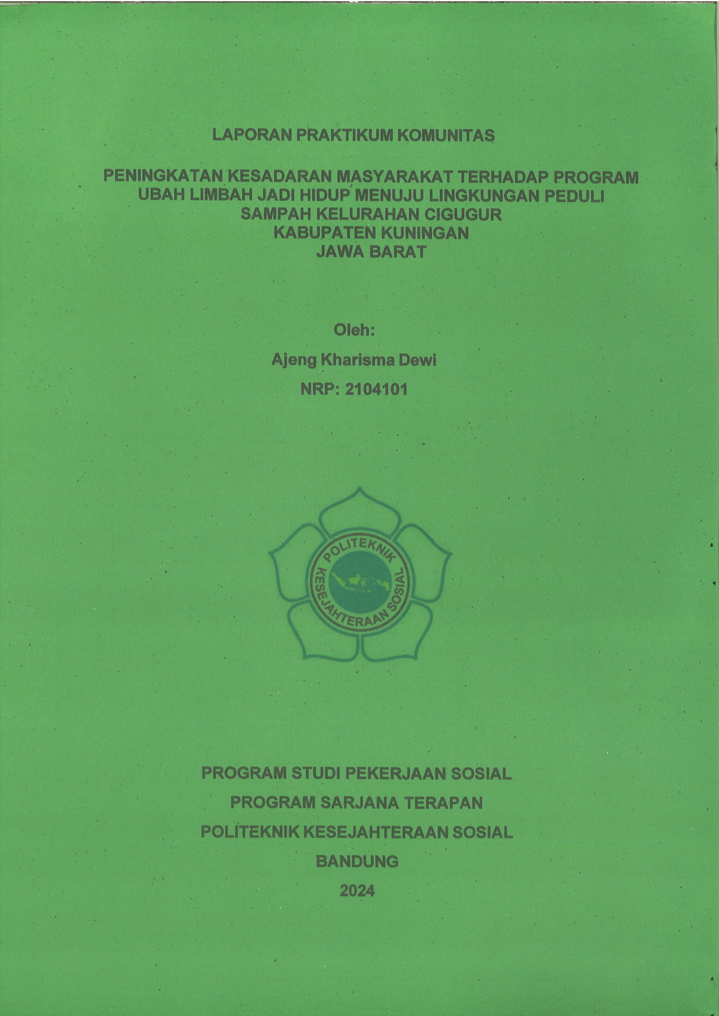 LAPORAN PRAKTIKUM KOMUNITAS - TAHUN 2024 PENINGKATAN KESADARAN MASYARAKAT TERHADAP PROGRAM UBAH LIMBAH JADI HIDUP MENUJU LINGKUNGAN PEDULI SAMPAH KELURAHAN CIGUGUR KABUPATEN KUNINGAN JAWA BARAT