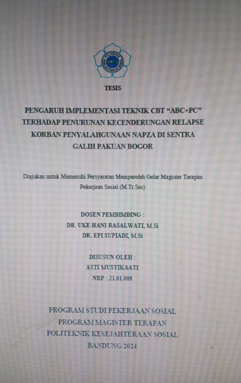 The Effect of Implementation of CBT Technique “ABC+PC” in Reducing the Tendency of Relapse of Victims of Drug Abuse in Sentra Galih Pakuan Bogor.
