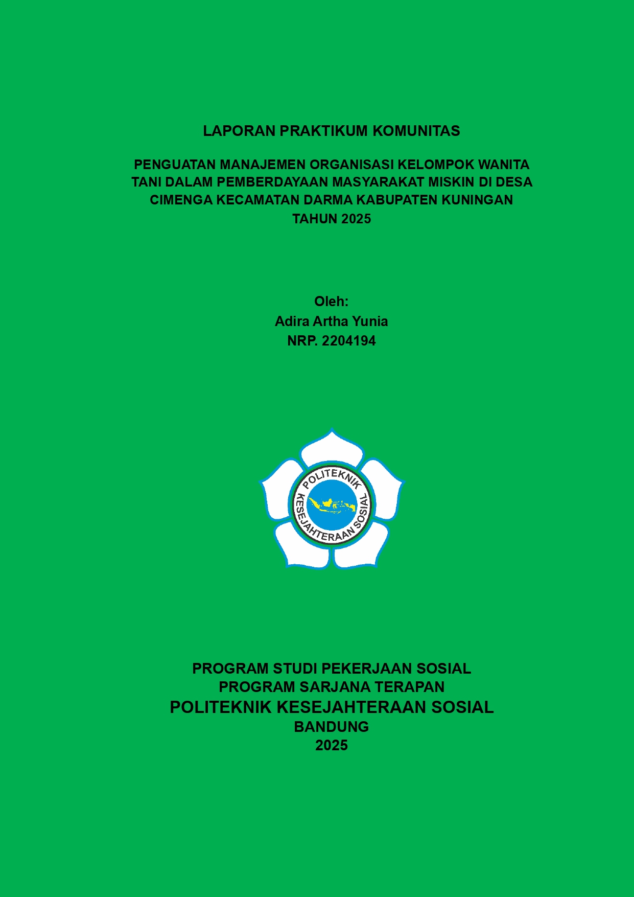 LAPORAN PRAKTIKUM KOMUNITAS PENGUATAN MANAJEMEN ORGANISASI KELOMPOK WANITA TANI DALAM PEMBERDAYAAN MASYARAKAT MISKIN DI DESA CIMENGA KECAMATAN DARMA