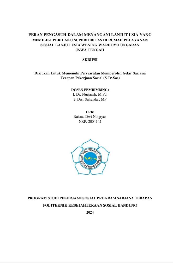 RAHMA DWI NINGTYAS. 2004142. Peran Pengasuh dalam Menangani Lanjut Usia yang Memiliki Perilaku Superioritas di Rumah Pelayanan Sosial Lanjut Usia Wening Wardoyo Ungaran. Pembimbing Nurjanah dan Suhendar