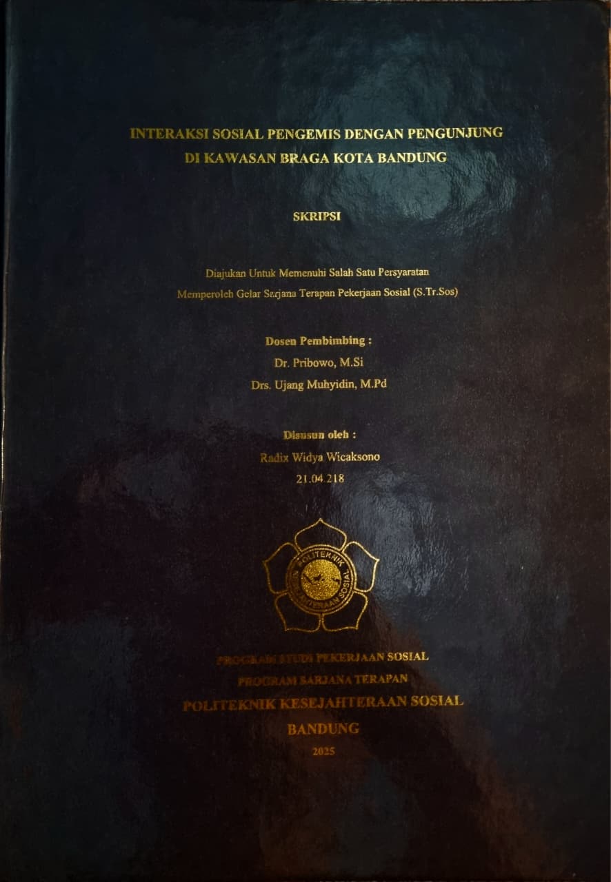 RADIX WIDYA WICAKSONO, NRP. 21.04.218. Interaksi sosial pengemis dengan pengunjung di Kawasan Braga Kota Bandung. Dosen Pembimbing Pribowo dan Ujang Muhyidin
