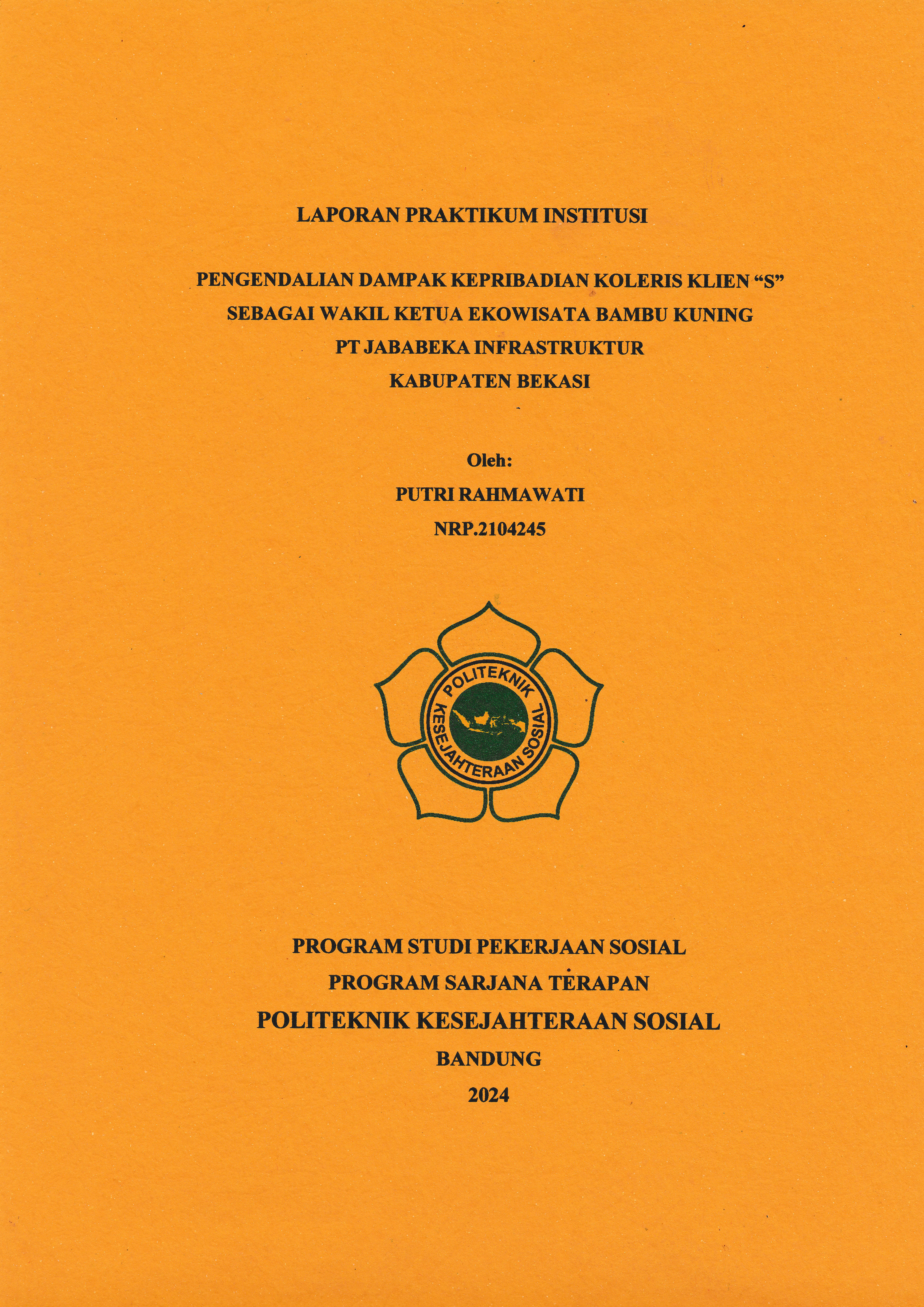 LAPORAN PRAKTIKUM INSTITUSI PENGENDALIAN DAMPAK KEPRIBADIAN KOLERIS KLIEN “S” SEBAGAI WAKIL KETUA EKOWISATA BAMBU KUNING PT JABABEKA INFRASTRUKTUR KABUPATEN BEKASI