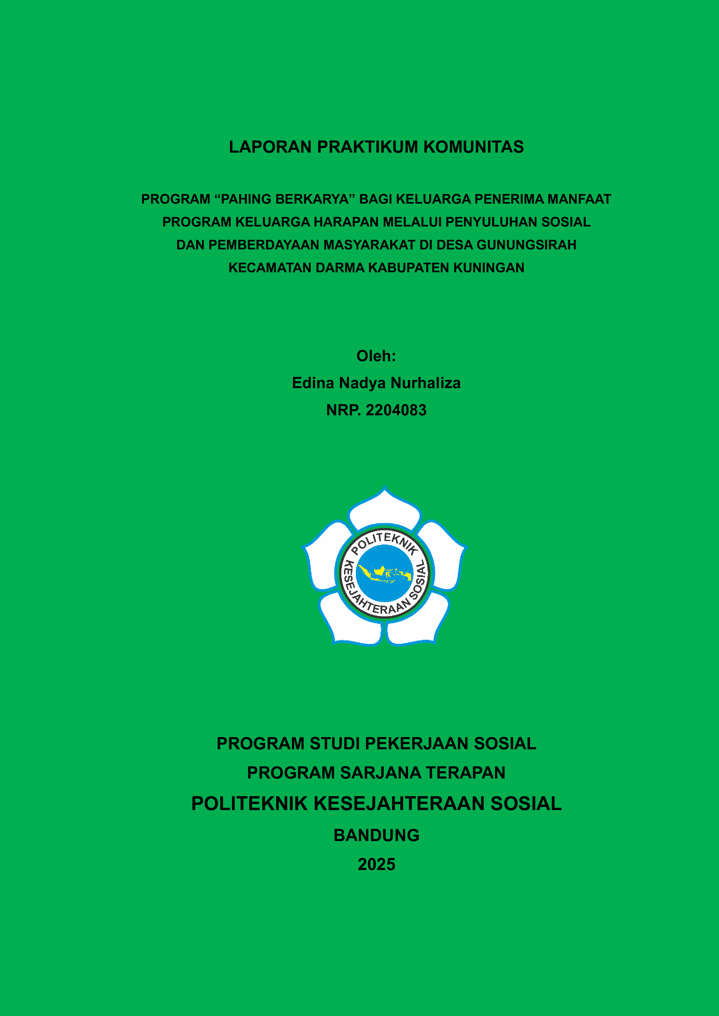 LAPORAN PRAKTIKUM KOMUNITAS PROGRAM “PAHING BERKARYA” BAGI KELUARGA PENERIMA MANFAAT PROGRAM KELUARGA HARAPAN MELALUI PENYULUHAN SOSIAL DAN PEMBERDAYAAN MASYARAKAT DI DESA GUNUNGSIRAH KECAMATAN DARMA KABUPATEN KUNINGAN