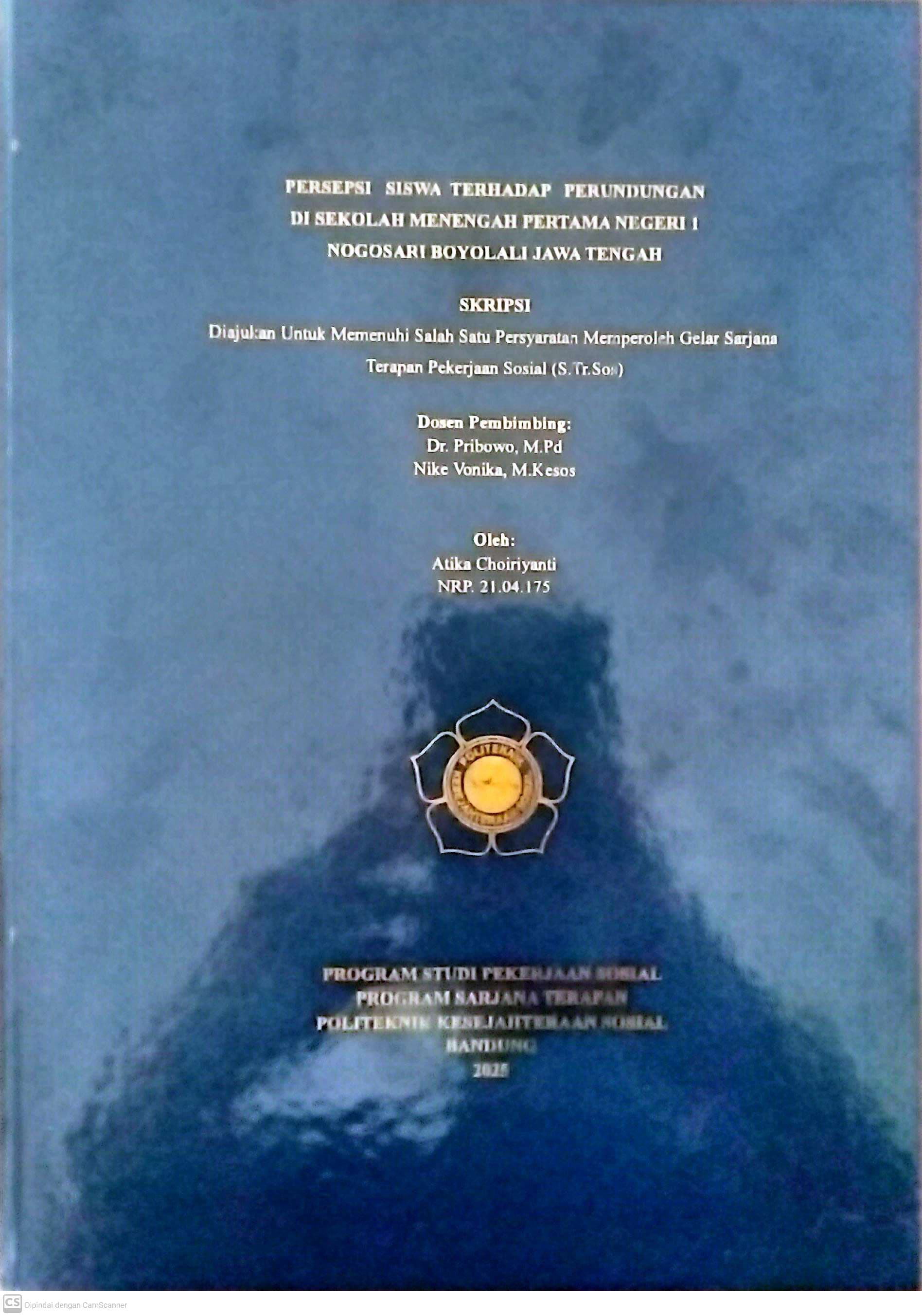 Atika Choiriyanti, NRP. 21.04.175. Persepsi Siswa Terhadap Perundungan di SMP Negeri 1 Nogosari Kabupaten Boyolali. Dibimbing oleh PRIBOWO dan NIKE VONIKA.