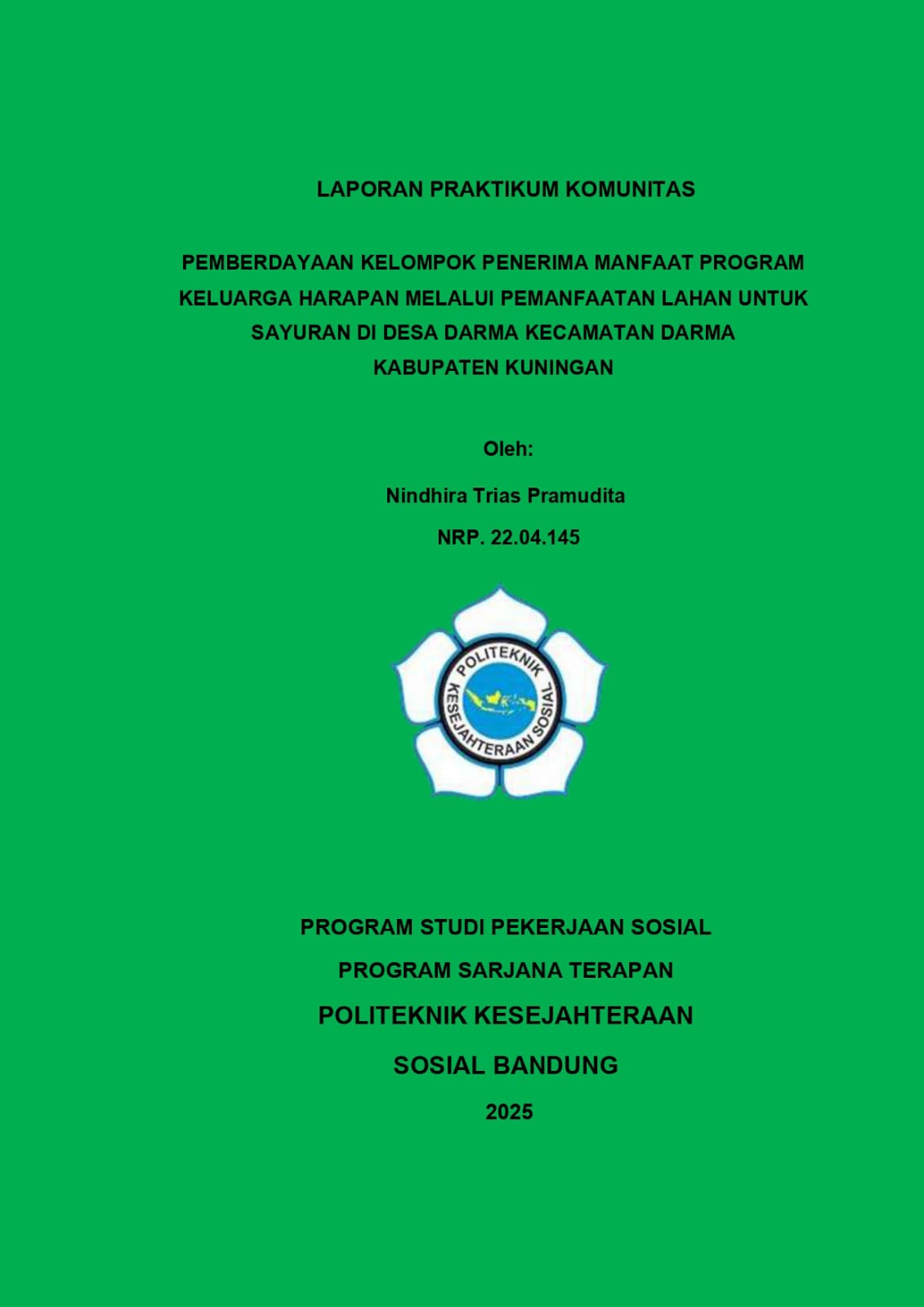 LAPORAN PRAKTIKUM KOMUNITAS PEMBERDAYAAN KELOMPOK PENERIMA MANFAAT PROGRAM KELUARGA HARAPAN MELALUI PEMANFAATAN LAHAN UNTUK SAYURAN DI DESA DARMA KECAMATAN DARMA KABUPATEN KUNINGAN