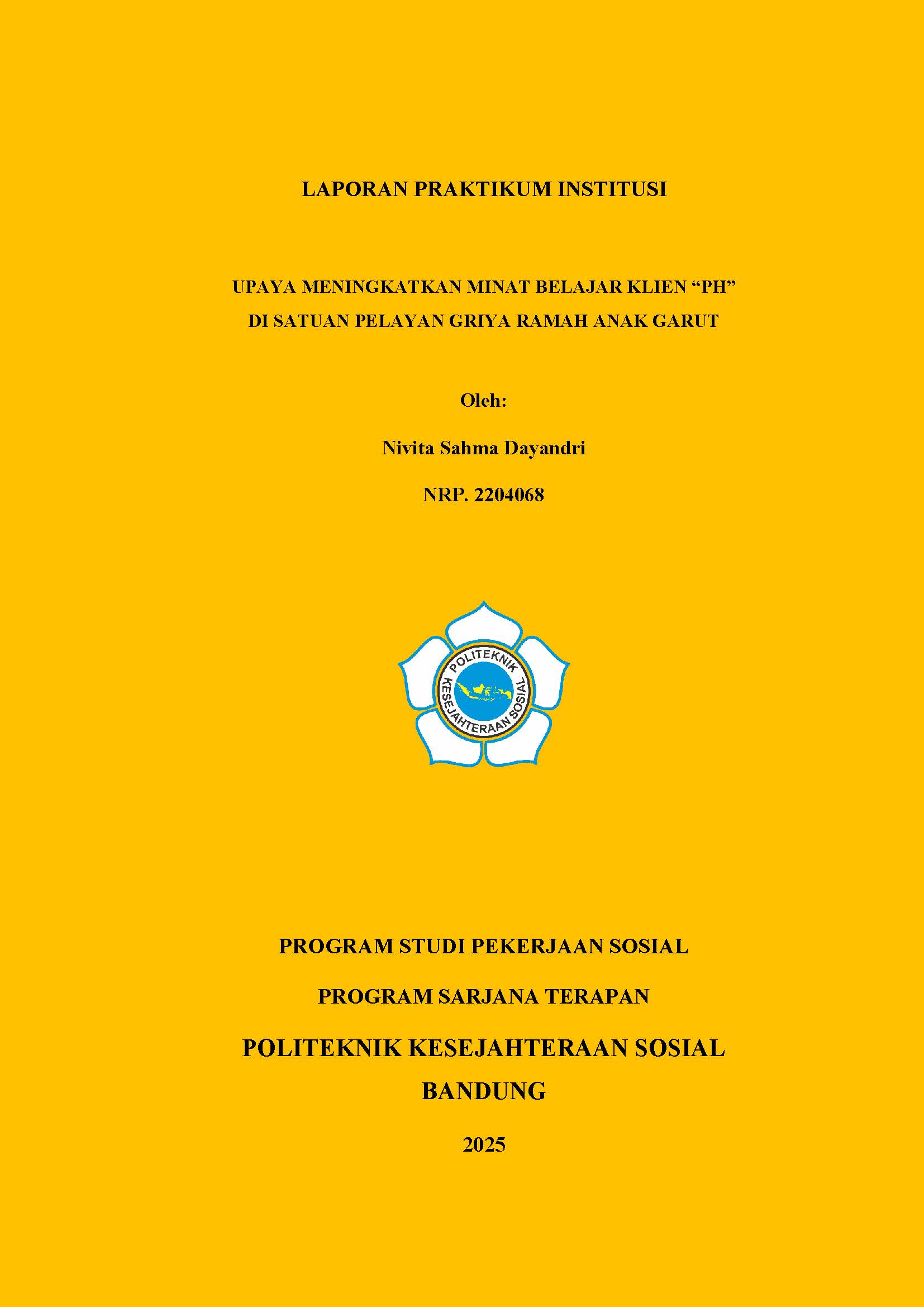 LAPORAN PRAKTIKUM INSTITUSI TAHUN 2025 - UPAYA MENINGKATKAN MINAT BELAJAR KLIEN "PH" DI SATUAN PELAYAN GRIYA RAMAH ANAK GARUT