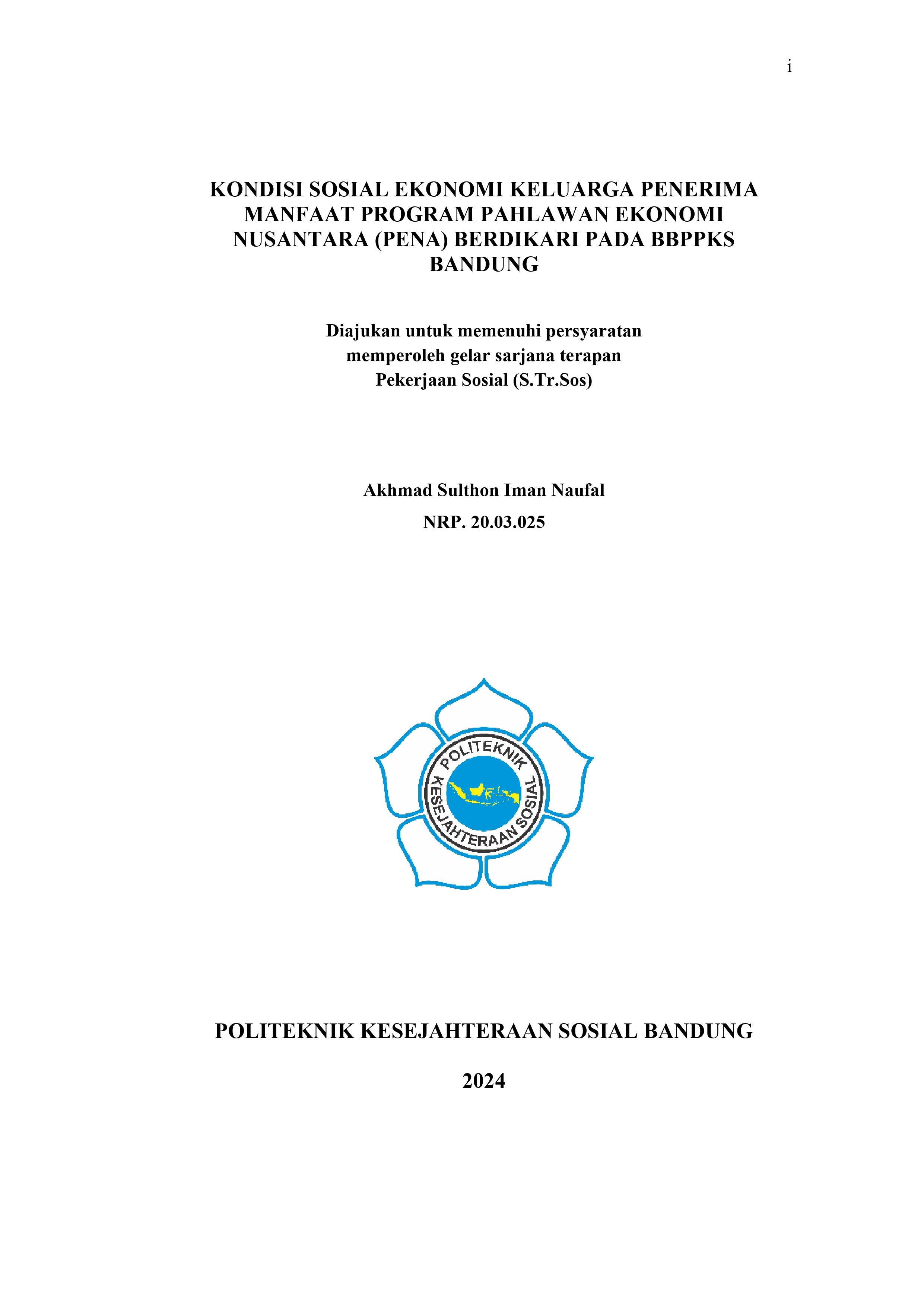 AKHMAD SULTHON, 20.03.025. Kondisi Sosial Ekonomi Keluarga Penerima Manfaat Program Pahlawan Ekonomi Nusantara (PENA) Berdikari pada BBPPKS Bandung.