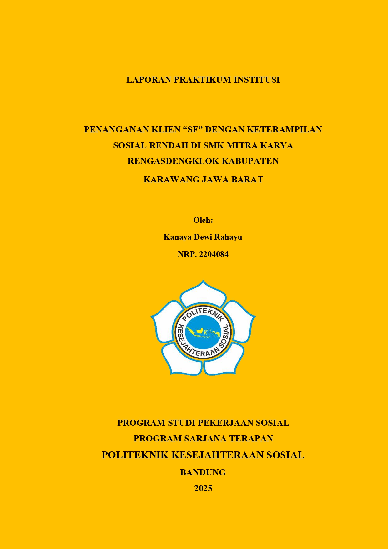 LAPORAN PRAKTIKUM INSTITUSI - PENANGANAN KLIEN “SF” DENGAN KETERAMPILAN SOSIAL RENDAH DI SMK MITRA KARYA RENGASDENGKLOK KABUPATEN KARAWANG JAWA BARAT