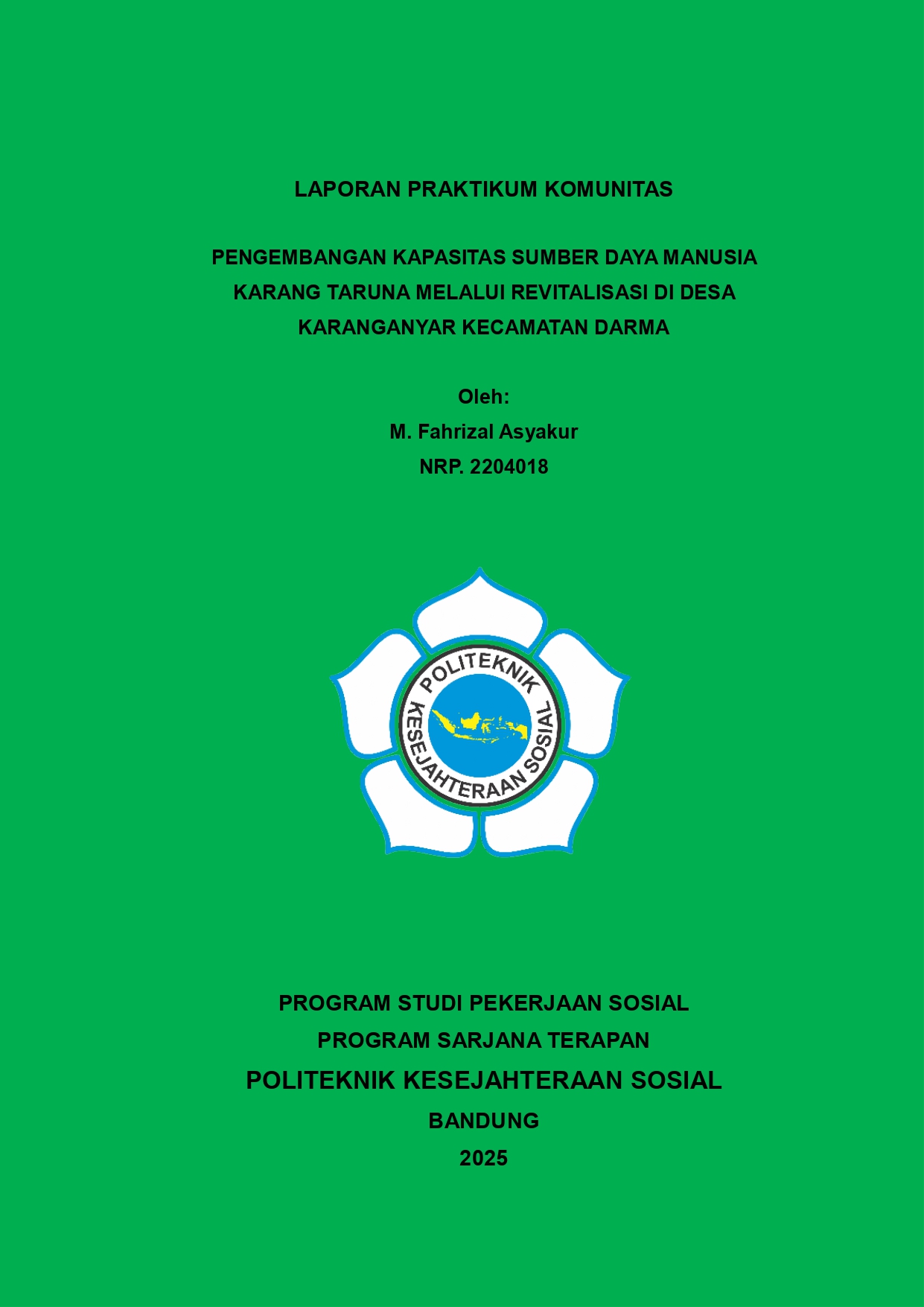 LAPORAN PRAKTIKUM KOMUNITAS - PENGEMBANGAN KAPASITAS SUMBER DAYA MANUSIA KARANG TARUNA MELALUI REVITALISASI DI DESA KARANGANYAR KECAMATAN DARMA