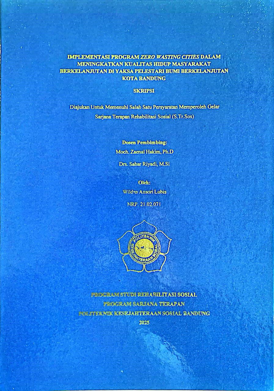 | dc.description.abstract | Wildan Ansori Lubis, NRP. 21.02.071. Implementasi Program Zero Wasting Citires dalam Meningkatkan Kualitas Hidup Masyarakat Berkelanjutan di Yaksa Pelestari Bumi Berkelanjutan Kota Bandung. Dibimbing oleh: MOCH ZAENAL HAKIM dan SABAR RIYADI Permasalahan pengelolaan sampah rumah tangga di Kota Bandung masih menjadi tantangan serius dalam mewujudkan masyarakat berkelanjutan. Program Zero Wasting Cities (ZWC) yang dijalankan oleh Yaksa Pelestari Bumi Berkelanjutan (YPBB) hadir sebagai upaya edukatif dan pemberdayaan masyarakat dalam pengurangan sampah dari sumber. Penelitian ini bertujuan untuk menganalisis implementasi Program ZWC dalam meningkatkan kualitas hidup masyarakat berkelanjutan, dengan menggunakan teori implementasi George C. Edwards III yang mencakup aspek komunikasi, sumber daya, disposisi atau sikap, dan struktur birokrasi. Metode penelitian yang digunakan adalah kualitatif deskriptif, dengan teknik pengumpulan data berupa wawancara mendalam, observasi, dan dokumentasi terhadap enam informan dari pelaksana, pemerintah, dan masyarakat penerima manfaat. Hasil penelitian menunjukkan bahwa pelaksanaan program belum berjalan optimal, ditandai dengan lemahnya koordinasi antar pelaksana dan terbatasnya sumber daya kader lingkungan. Sebagai respons terhadap permasalahan tersebut, peneliti mengusulkan program Sekolah Warga Zero Waste sebagai bentuk intervensi sosial berbasis komunitas. Program ini menggunakan metode pekerjaan sosial dengan kelompok groupwork dan casework untuk meningkatkan pemahaman warga, memperkuat kapasitas kader, dan membangun kolaborasi lintas lembaga dalam mendukung gaya hidup minim sampah. KATA KUNCI: Implementasi, Zero Wasting Cities, Yaksa Pelestari Bumi Berkelanjutan | |