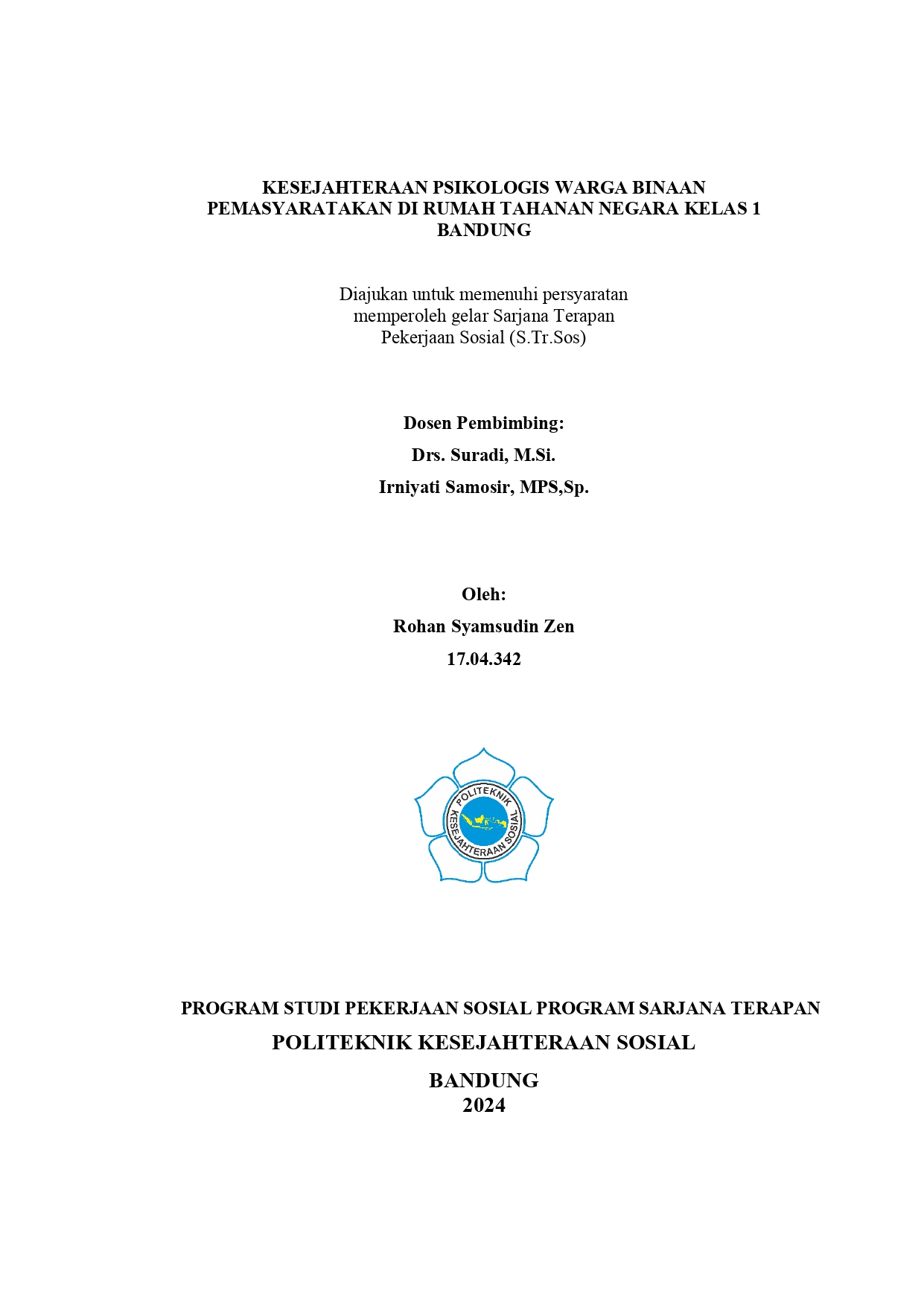 Dosen Pembimbing: SURADI dan IRNIYATI SAMOSIR.