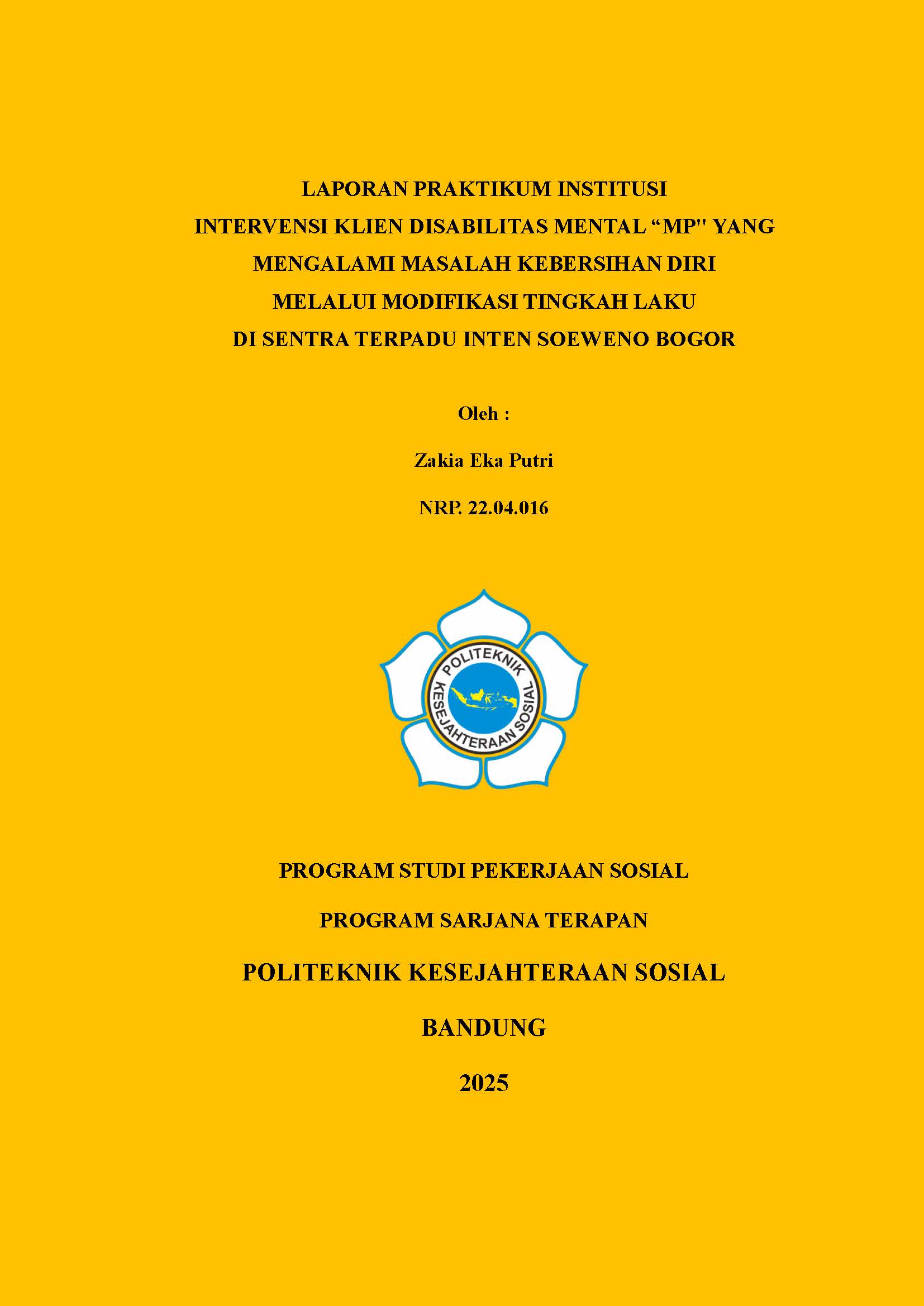LAPORAN PRAKTIKUM INSTITUSI - INTERVENSI KLIEN DISABILITAS MENTAL “MP" YANG MENGALAMI MASALAH KEBERSIHAN DIRI MELALUI MODIFIKASI TINGKAH LAKU DI SENTRA TERPADU INTEN SOEWENO BOGOR