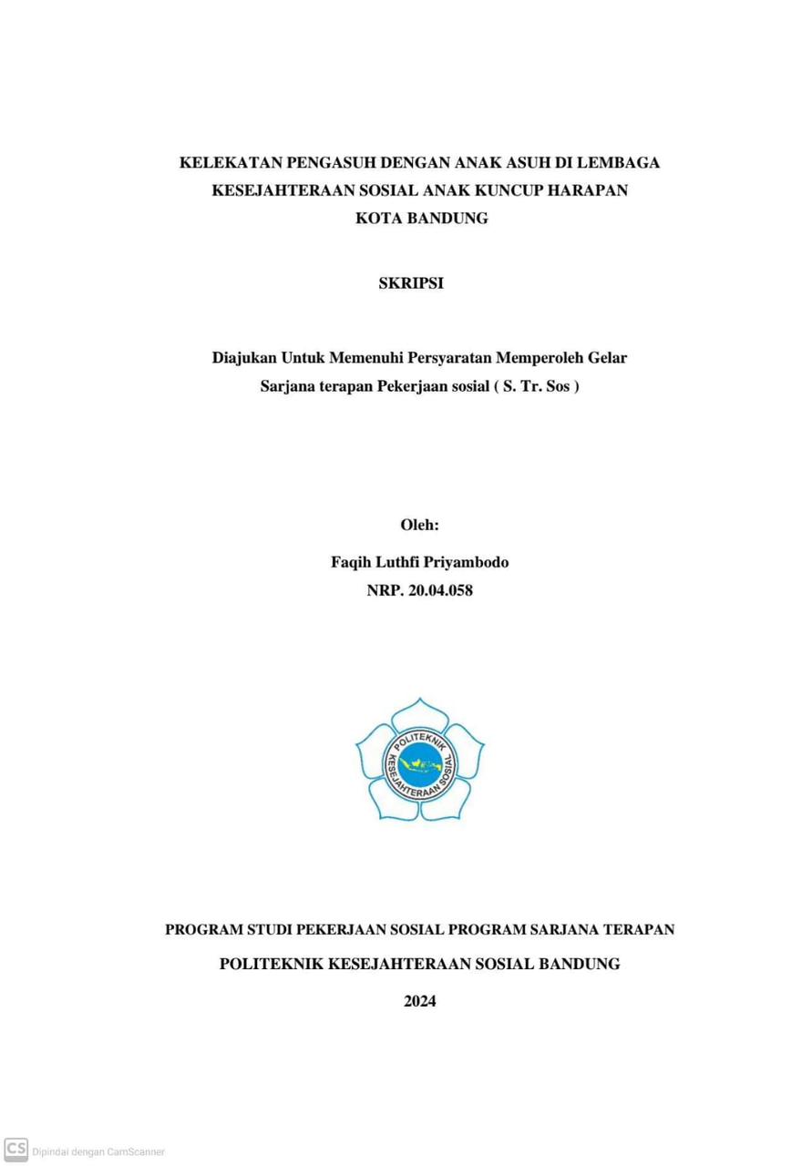 FAQIH LUTHFI PRIYAMBODO, NRP. 2004058. Kelekatan Pengasuh Dengan Anak Asuh Di Lembaga Kesejahteraan Sosial Anak Kuncup Harapan Kota Bandung,