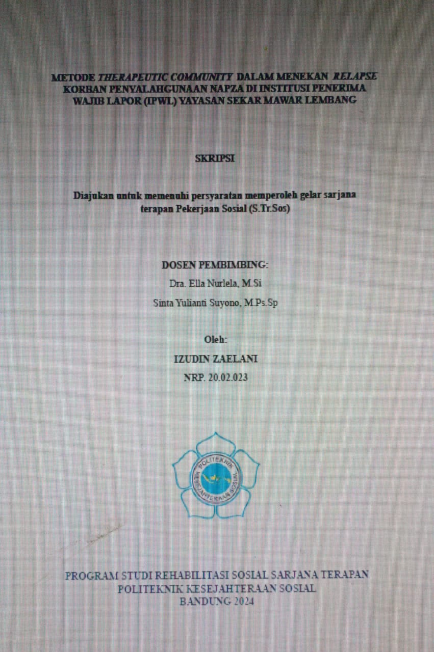 Metode therapeutic Community dalam Menekan Relapse Korban Penyalahgunaan Napza di institusi penerima wajib Lapor (IPWL) Yayasan sekar mawar Lembang