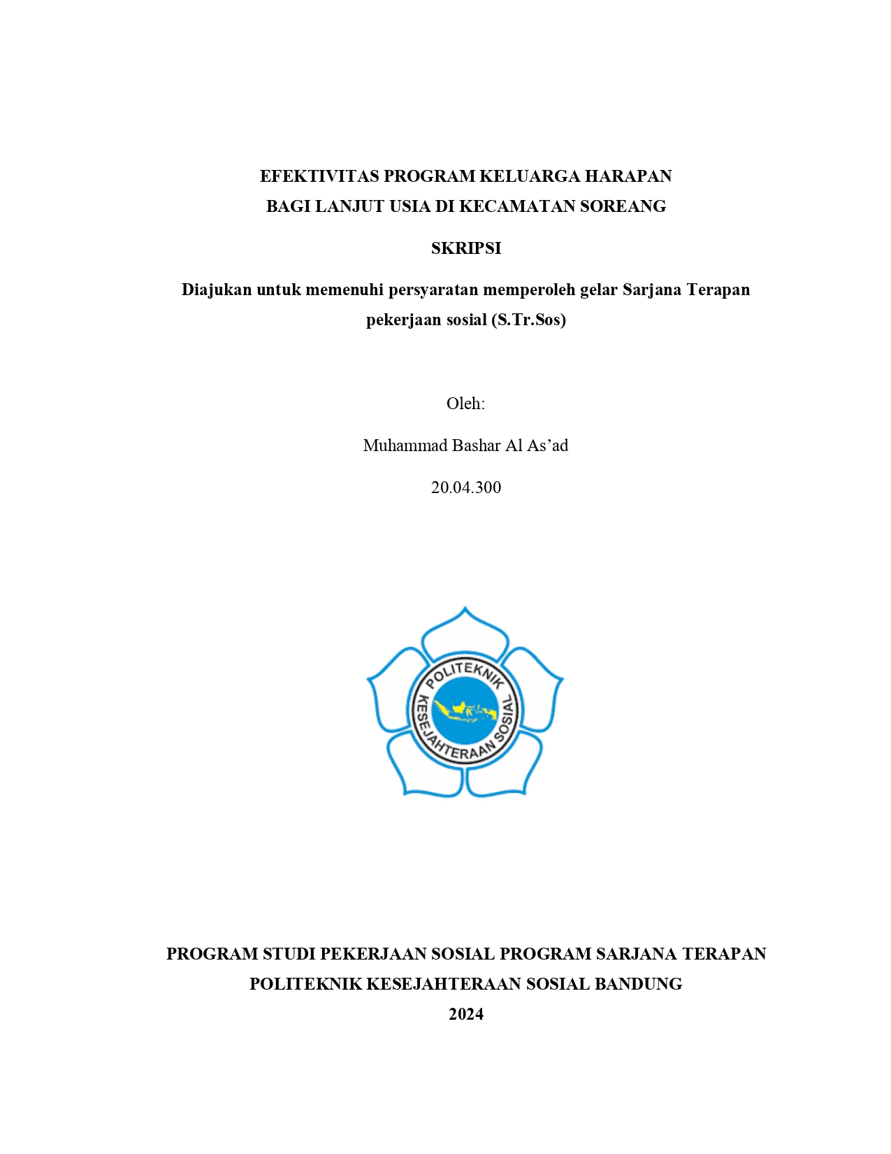 MUHAMMAD BASHAR AL AS’AD, NRP. 20.04.300. Efektivitas Program Keluarga Harapan Bagi Lanjut Usia di Kecamatan Soreang,