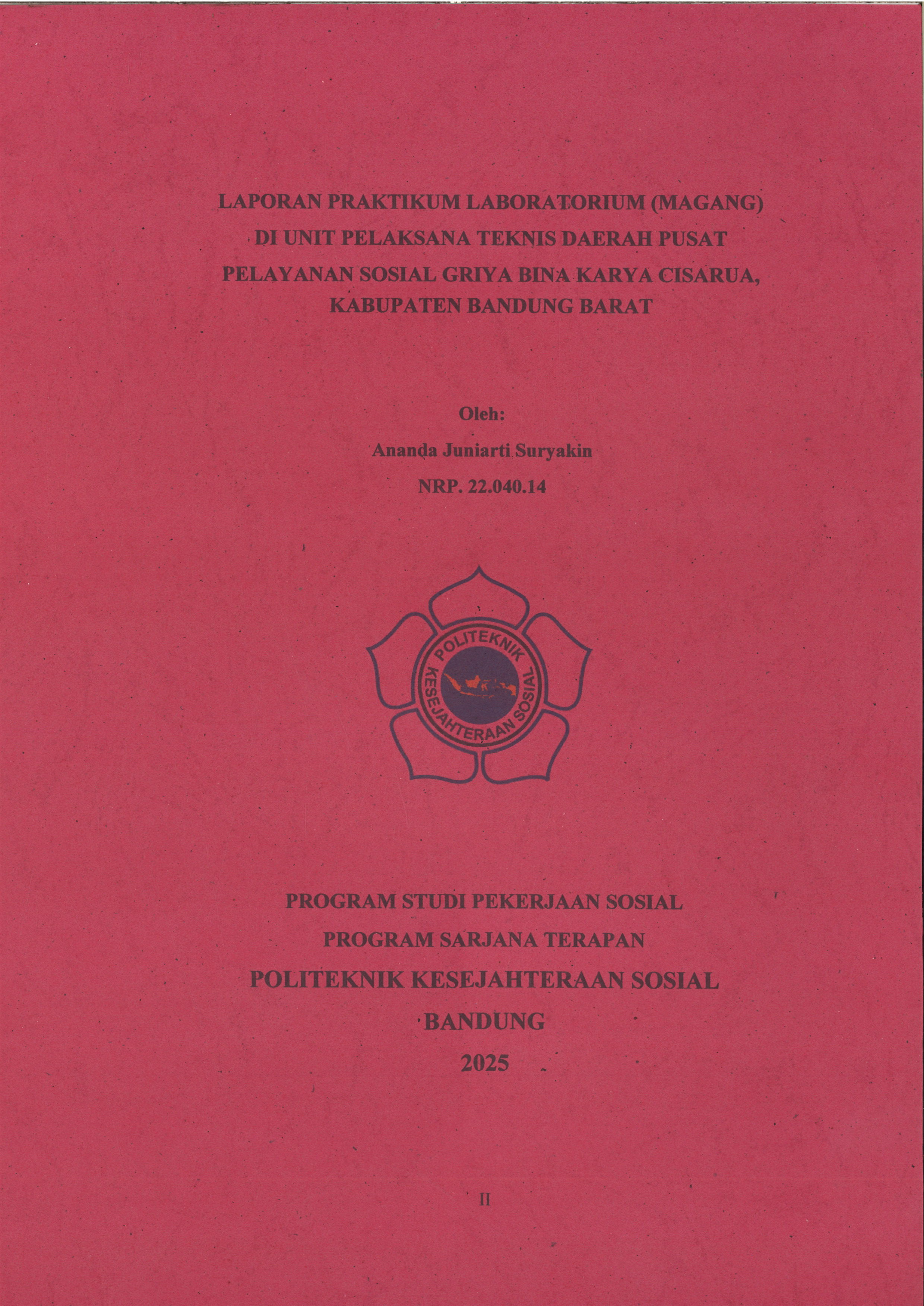 LAPORAN PRAKTIKUM LABORATORIUM (MAGANG) DI UNIT PELAKSANA TEKNIS DAERAH PUSAT PELAYANAN SOSIAL GRIYA BINA KARYA CISARUA KABUPATEN BANDUNG BARAT
