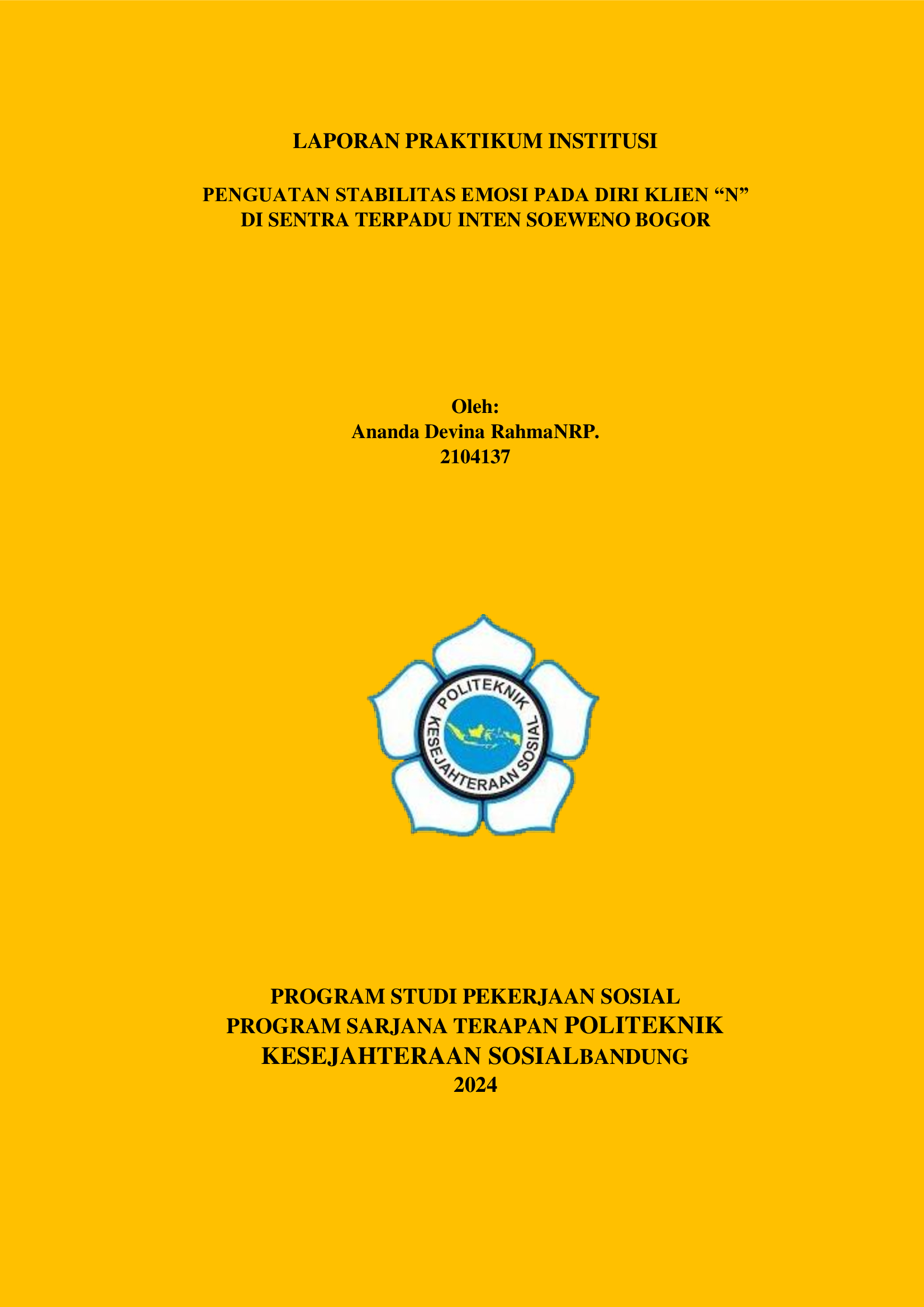 LAPORAN PRAKTIKUM INSTITUSI PENGUATAN STABILITAS EMOSI PADA DIRI KLIEN “N” DI SENTRA TERPADU INTEN SOEWENO BOGOR