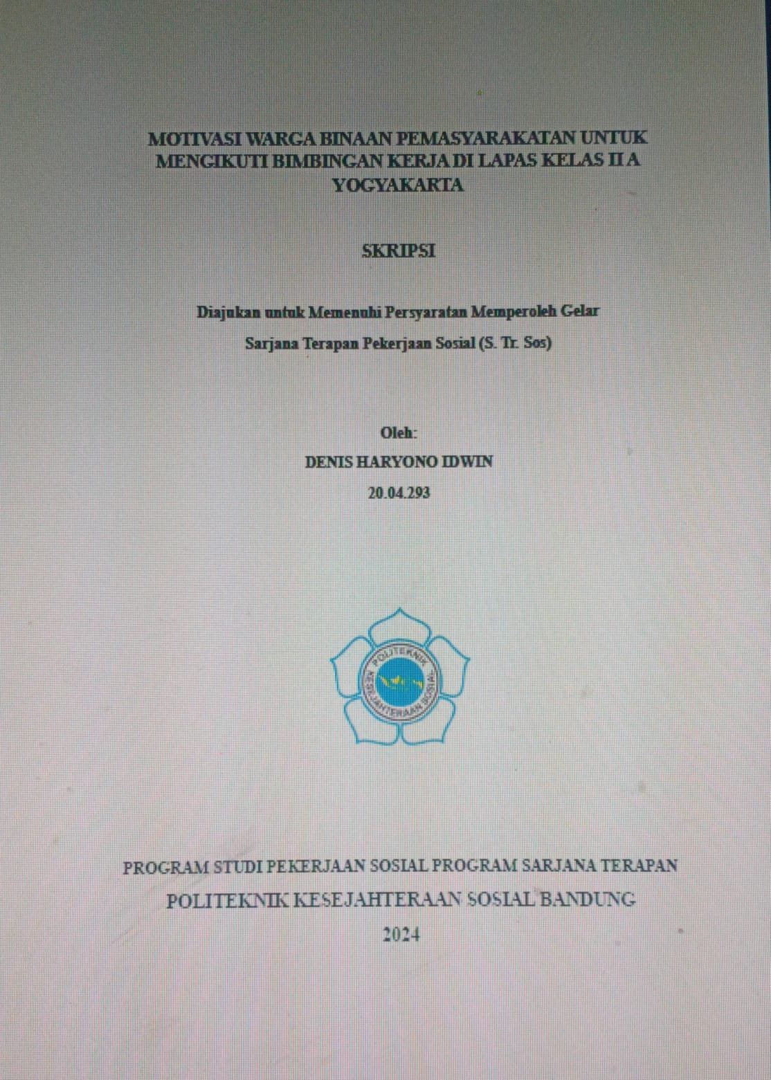 DENIS HARYONO IDWIN, 20.04.293. Motivasi Warga Binaan Pemasyarakatan untuk Mengikuti Bimbingan Kerja di Lapas Kelas II A Yogyakarta.