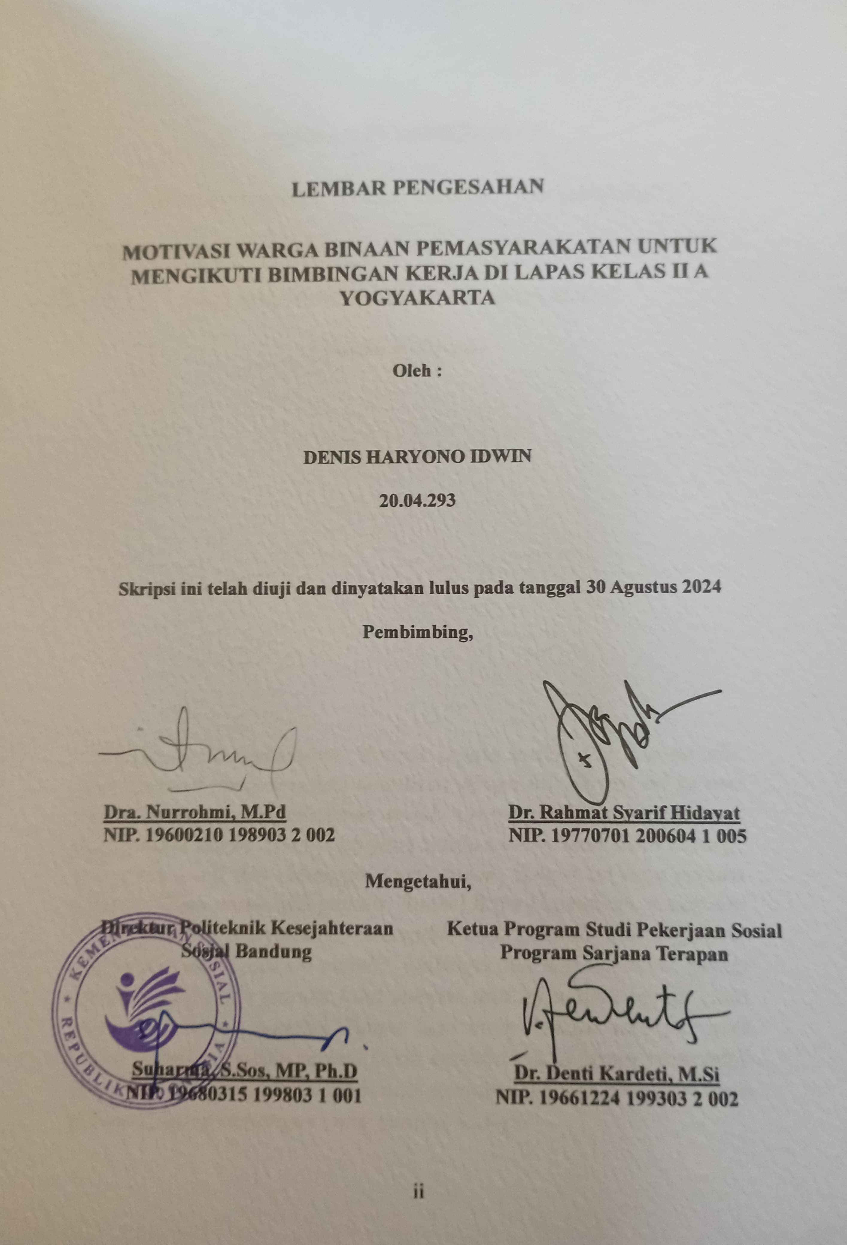 DENIS HARYONO IDWIN, 20.04.293. The Motivation of Correctional Inmates to Participate in Work Training at correctional facility Class II A Yogyakarta.