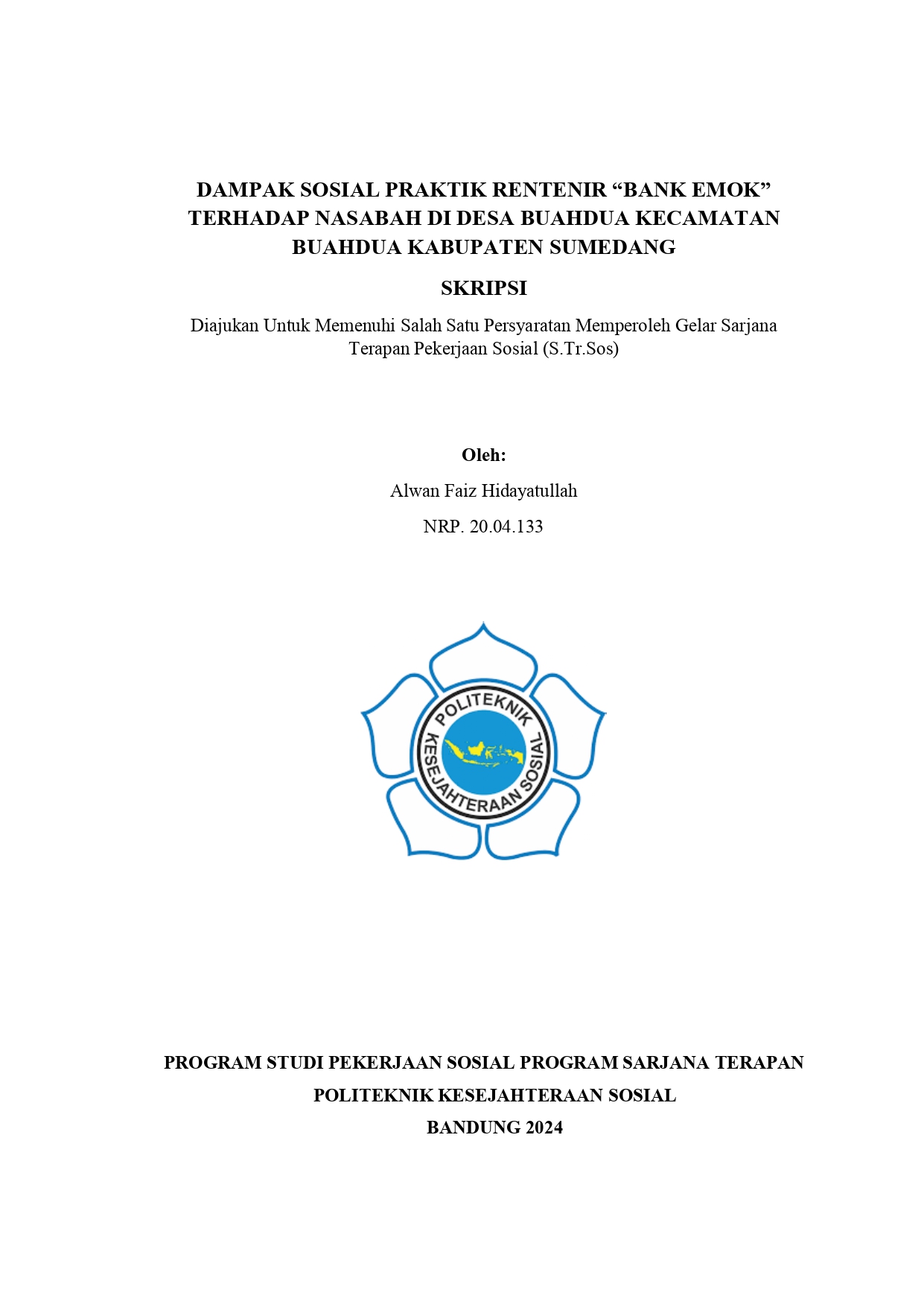 ALWAN FAIZ HIDAYATULAH, NRP. 2004133. Dampak Sosial Praktik Rentenir “Bank Emok” Terhadap Nasabah di Desa Buahdua Kecamatan Buahdua Kabupaten Sumedang.