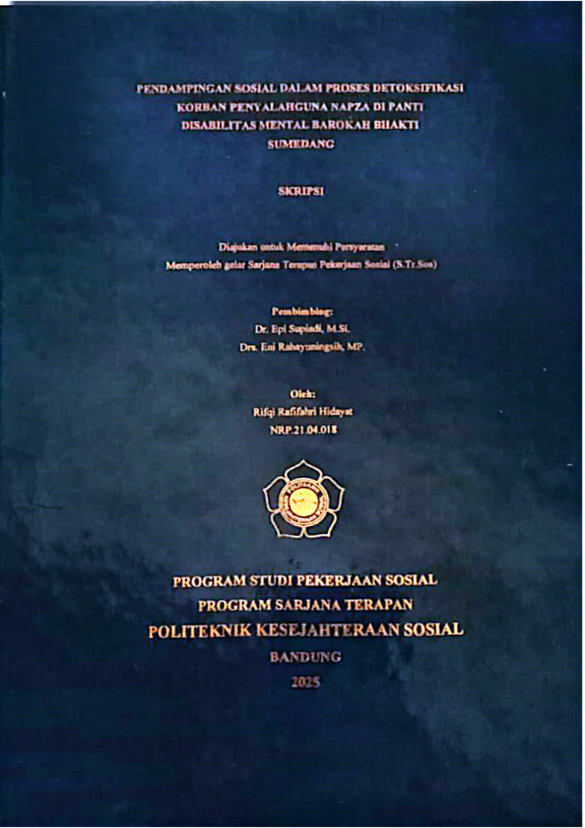 RIFQI RAFIFAHRI HIDAYAT, NRP. 21.04.018. Pendampingan Sosial dalam Proses Detoksifikasi Korban Penyalahguna NAPZA di Panti Disabilitas Mental Barokah Bhakti Sumedang. Dibimbing oleh EPI SUPIADI dan ENI RAHAYUNINGSIH