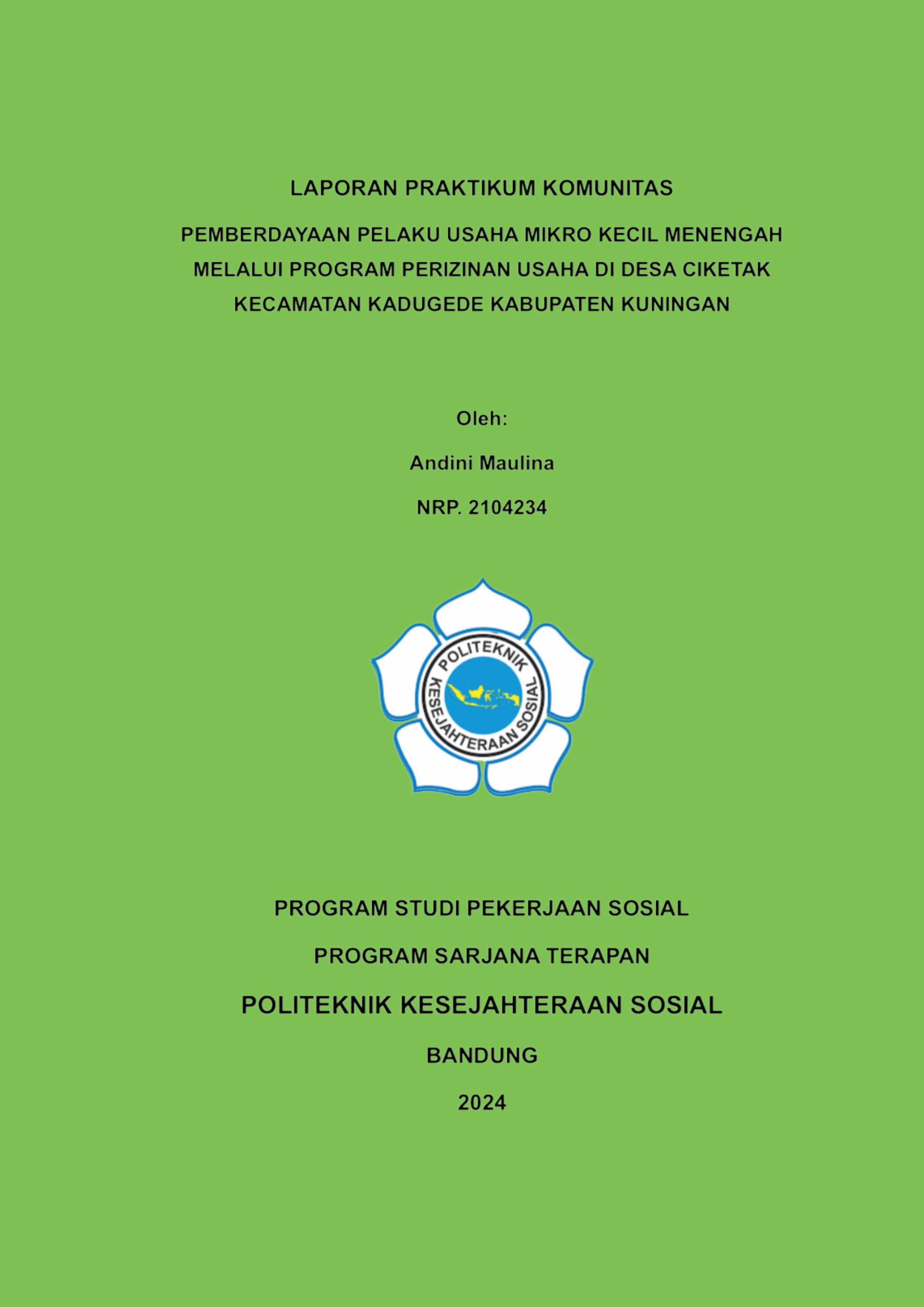 LAPORAN PRAKTIKUM KOMUNITAS - PEMBERDAYAAN PELAKU USAHA MIKRO KECIL MENENGAH MELALUI PROGRAM PERIZINAN USAHA DI DESA CIKETAK KECAMATAN KADUGEDE KABUPATEN KUNINGAN