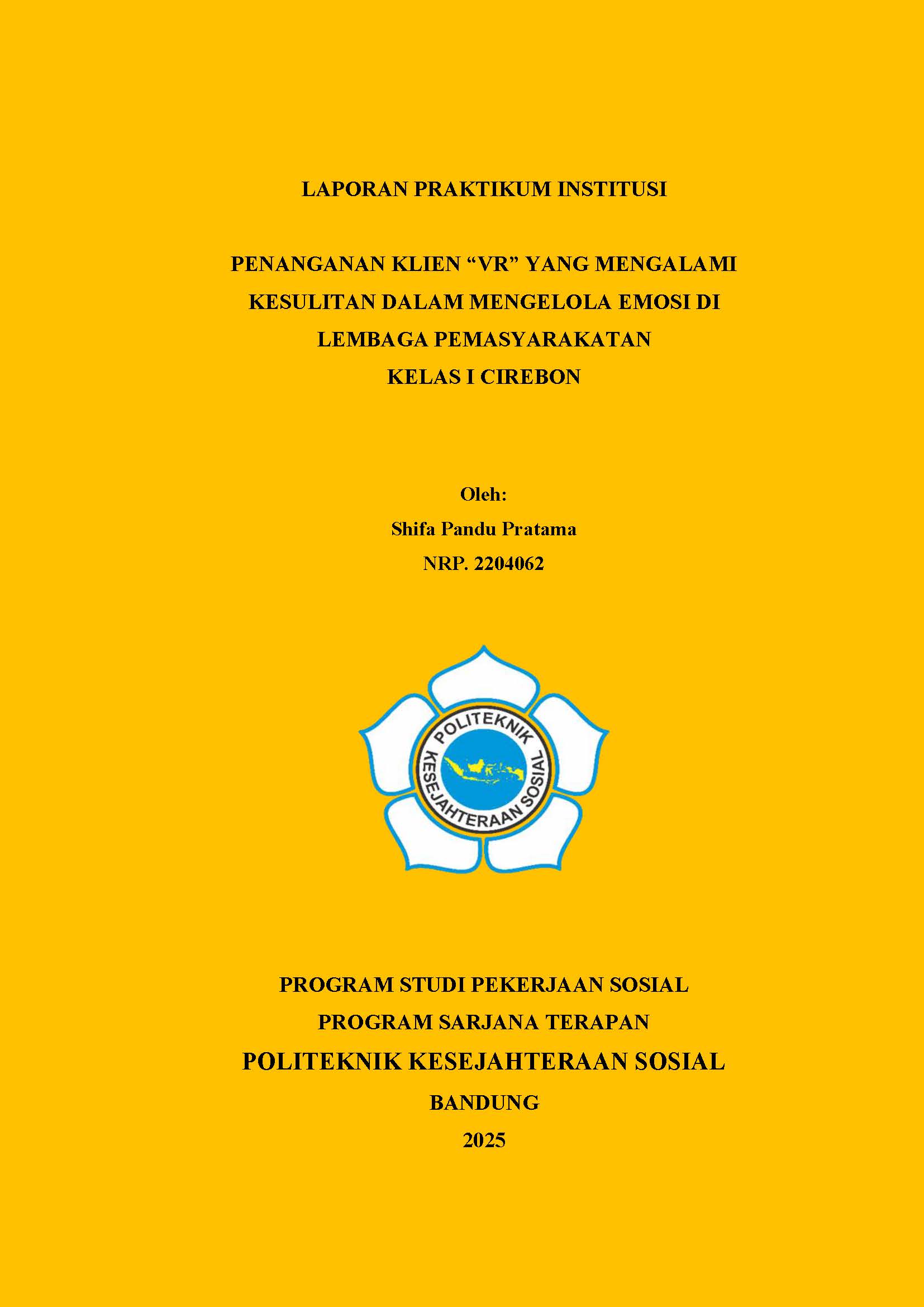 LAPORAN PRAKTIKUM INSTITUSI PENANGANAN KLIEN “VR” YANG MENGALAMI KESULITAN DALAM MENGELOLA EMOSI DI LEMBAGA PEMASYARAKATAN KELAS I CIREBON