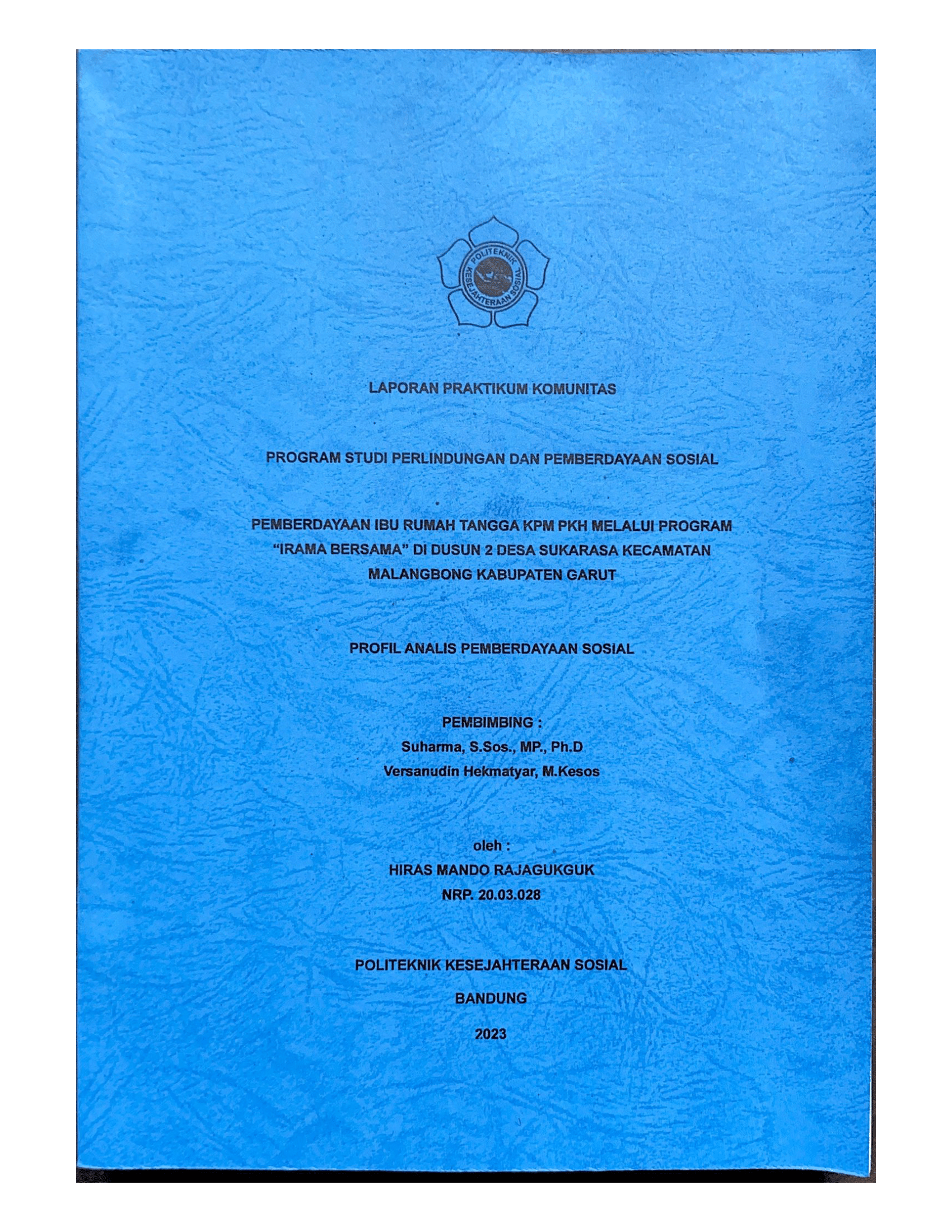 LAPORAN PRAKTIKUM KOMUNITAS PRODI LINDAYASOS - PEMBERDAYAAN IBU RUMAH TANGGA KPM PKH MELALUI PROGRAM “IRAMA BERSAMA” DI DUSUN 2 DESA SUKARASA KECAMATAN MALANGBONG KABUPATEN GARUT PROFIL ANALIS PEMBERDAYAAN SOSIAL