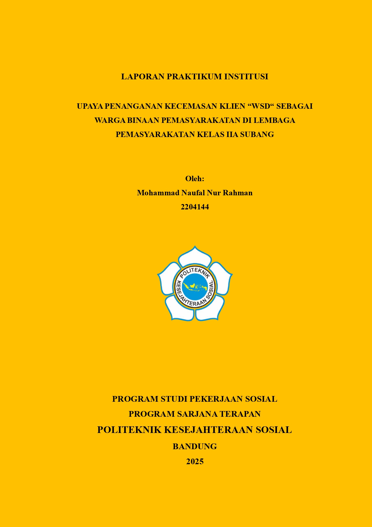 LAPORAN PRAKTIKUM INSTITUSI UPAYA PENANGANAN KECEMASAN KLIEN “WSD“ SEBAGAI WARGA BINAAN PEMASYARAKATAN DI LEMBAGA PEMASYARAKATAN KELAS IIA SUBANG