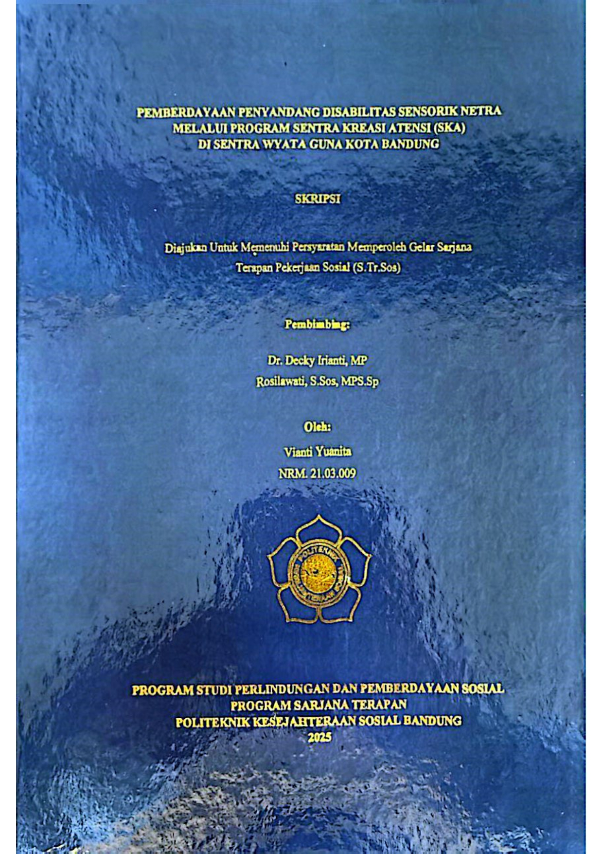 Vianti Yuanita, NRM. 21.03.009. Pemberdayaan Penyandang Disabilitas Sensorik Netra Melalui Program Sentra Kreasi Atensi (SKA) di Sentra Wyata Guna Kota Bandung. Dibimbing oleh DECKY IRIANTI dan ROSILAWATI
