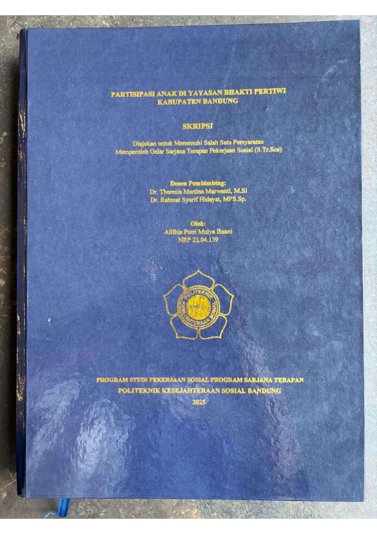 ALIFHIA PUTRI MULYA IHSANI, NRP. 21.04.139. Partisipasi Anak di Yayasan Bhakti Pertiwi Kabupaten Bandung. Dibimbing oleh TM. MARWANTI dan RAHMAT SYARIF HIDAYAT.