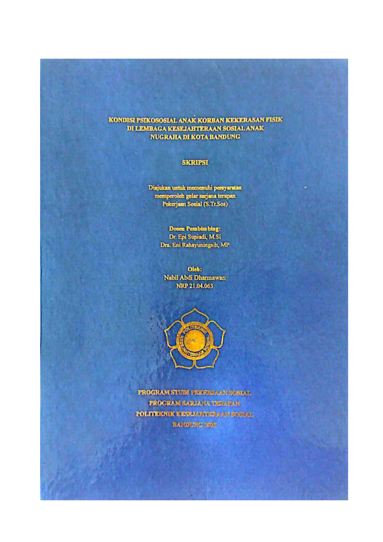 Nabil Abdi Dharmawan, NRP. 21.04.063. Kondisi Psikososial Anak Korban Kekerasan Fisik Di Lembaga Kesejahteraan Sosial Anak Nugraha di Kota Bandung. Dibimbing oleh EPI SUPIADI dan ENI RAHAYUNINGSIH