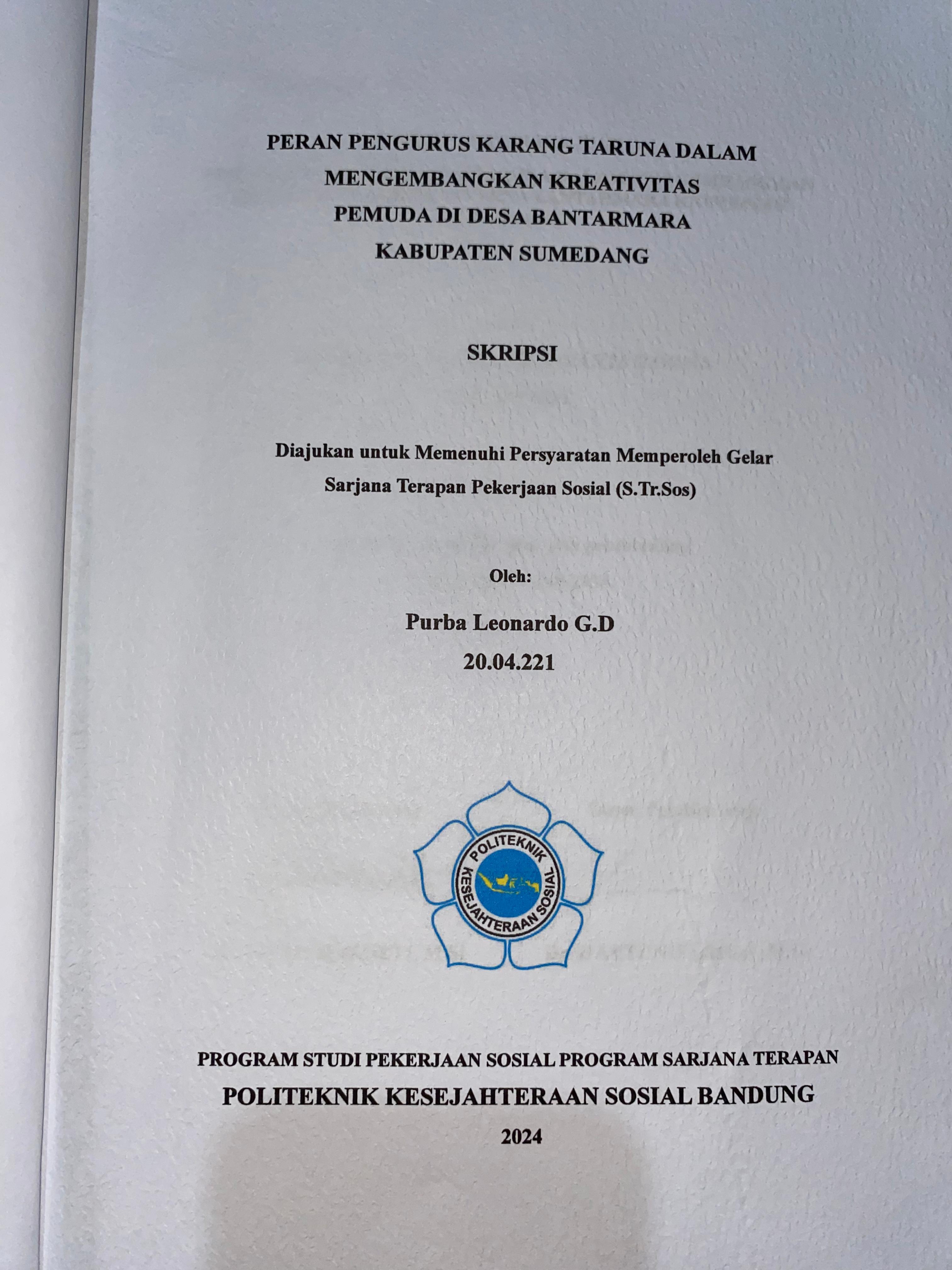 PURBA LEONARDO G.D, 20.04.221. PERAN PENGURUS KARANG TARUNA DALAM MENGEMBANGKAN KREATIVITAS PEMUDA DI DESA BANTARMARA KABUPATEN SUMEDANG.